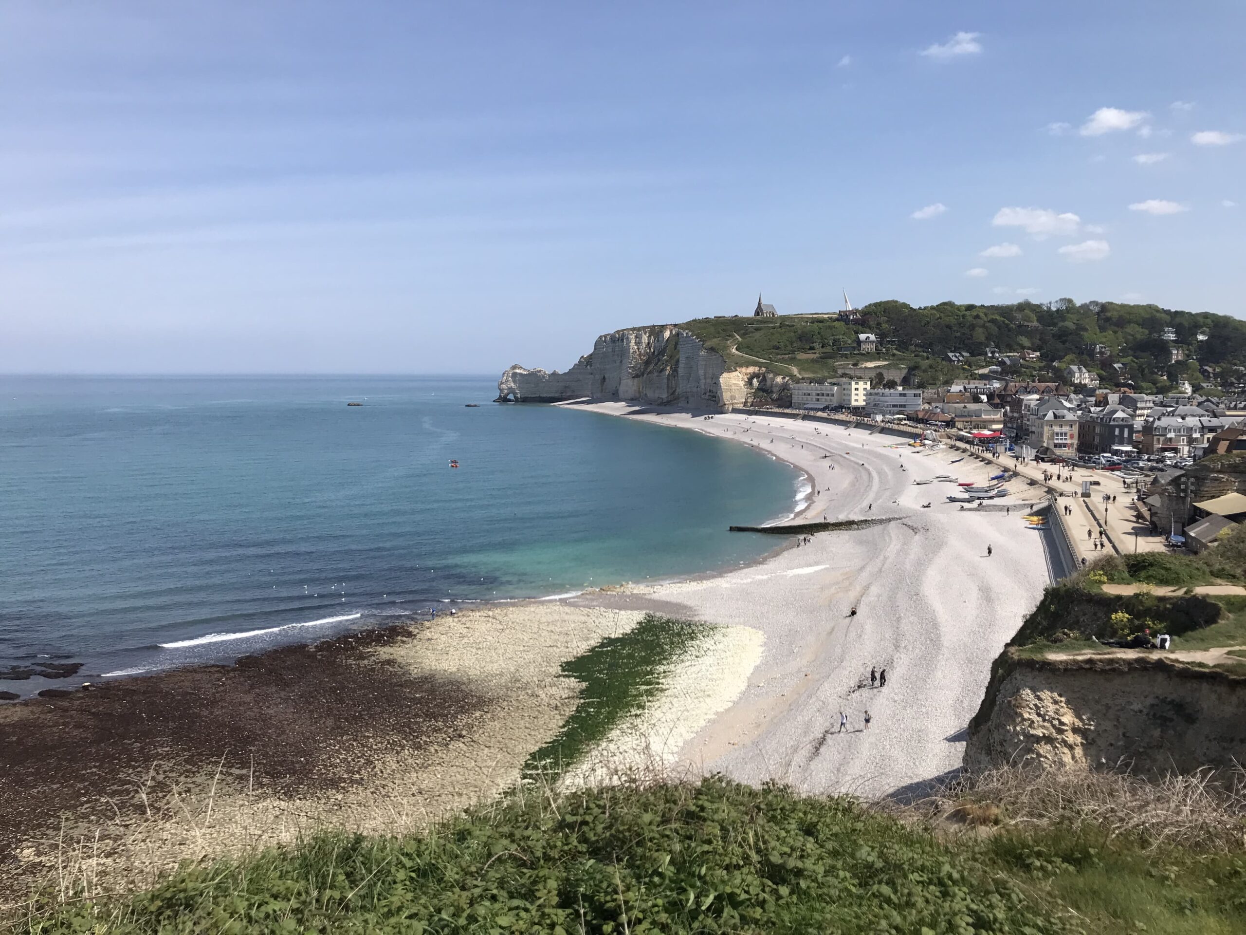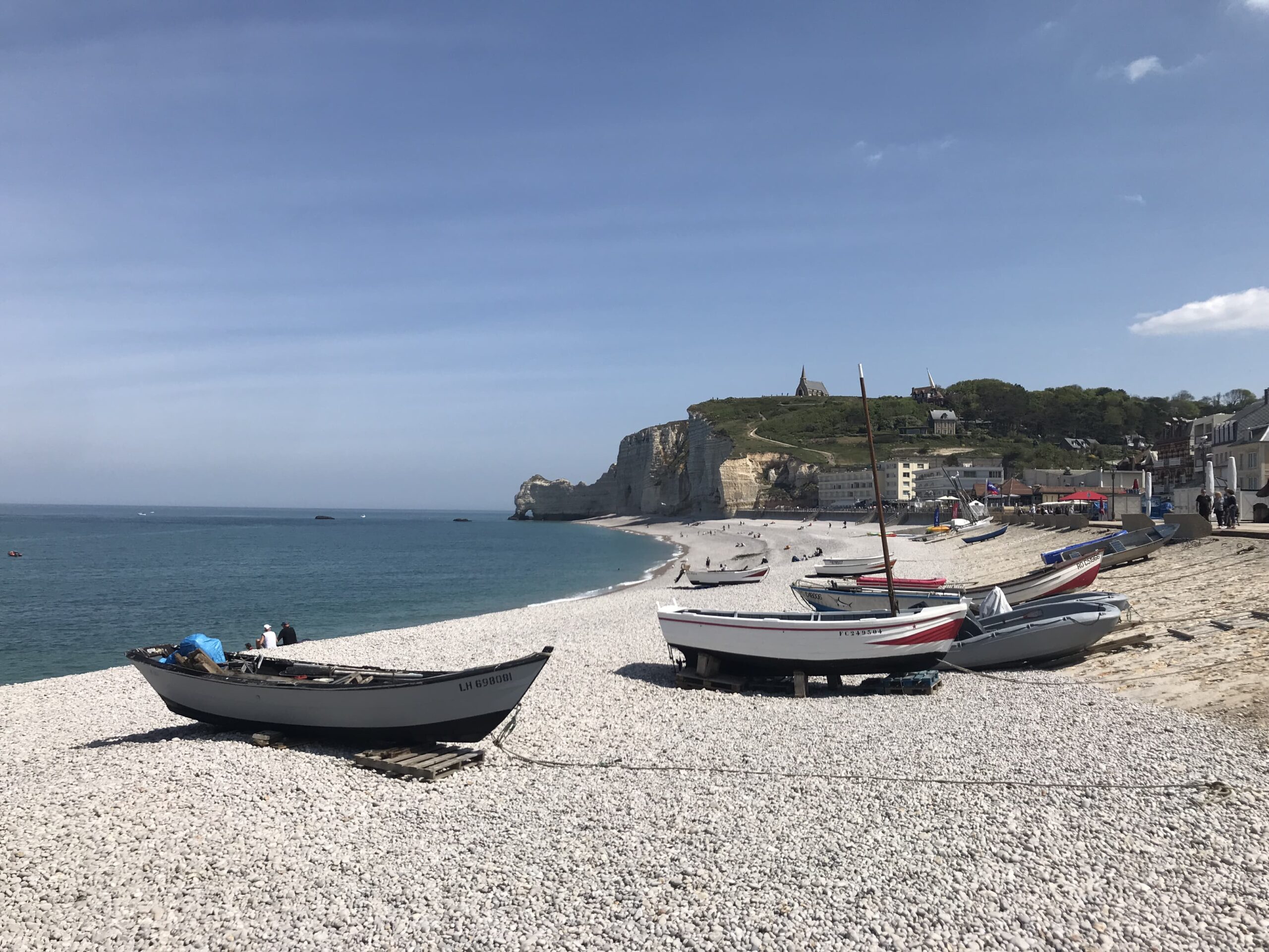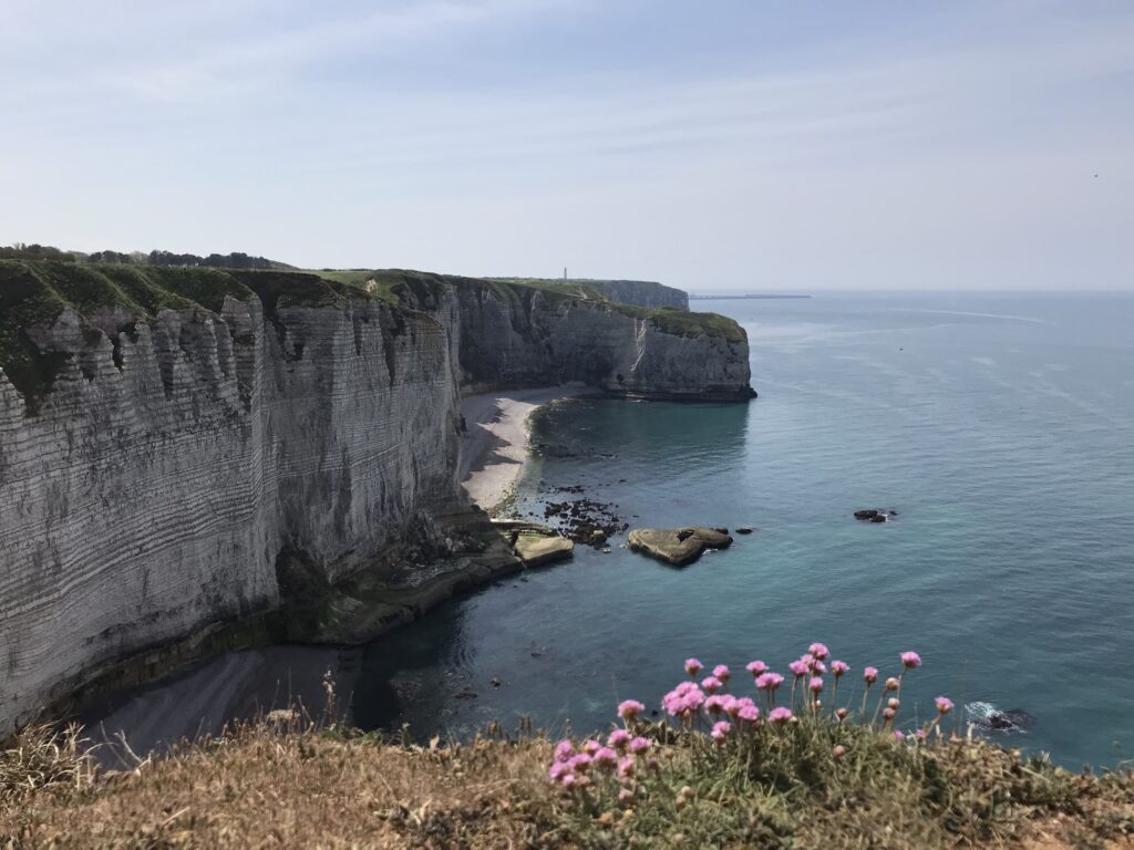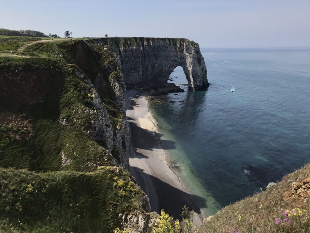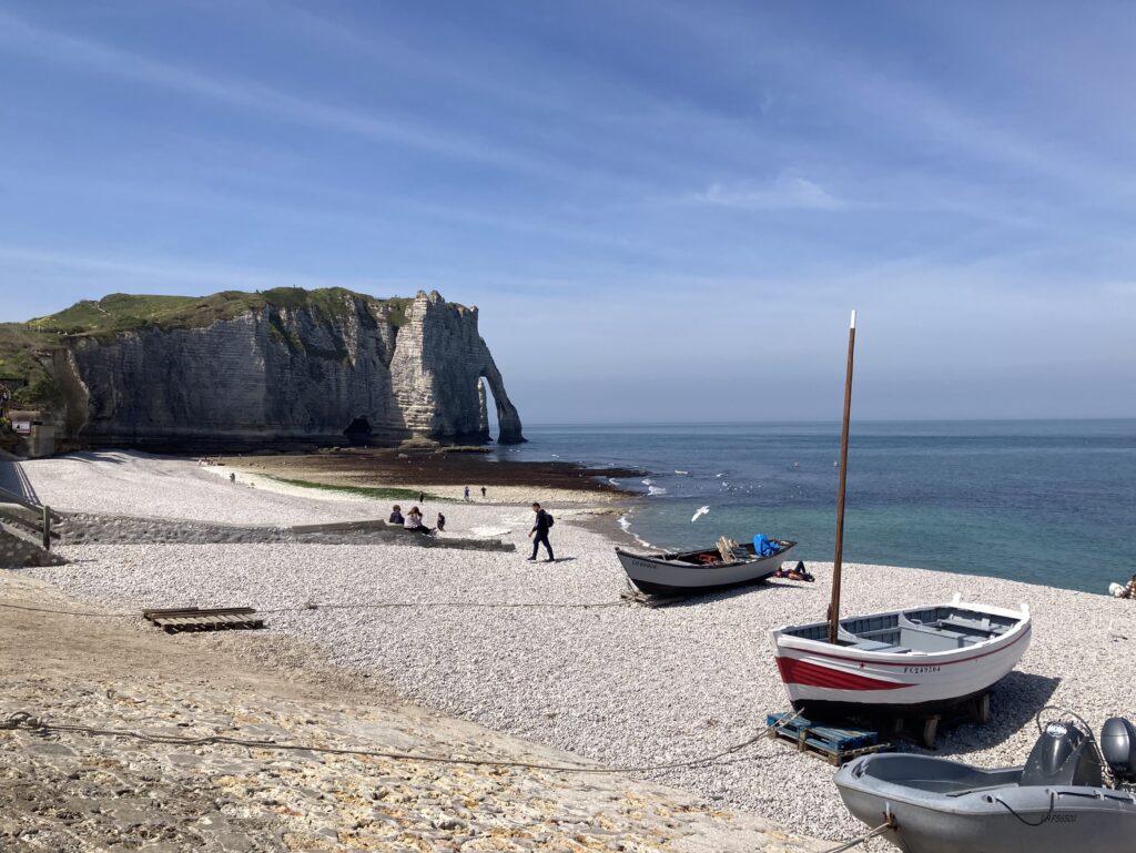 Die Klippen von Étretat – schon Monet war fasziniert von den Kreidefelsformationen in Kombination mit dem Sonnenlicht. Wolkenloser Himmel und sonnige 18 Grad laden uns heute ein, uns der Smartphoneknippserei hinzugeben.