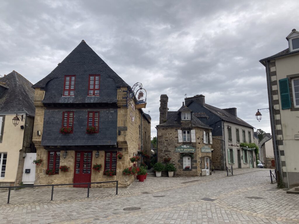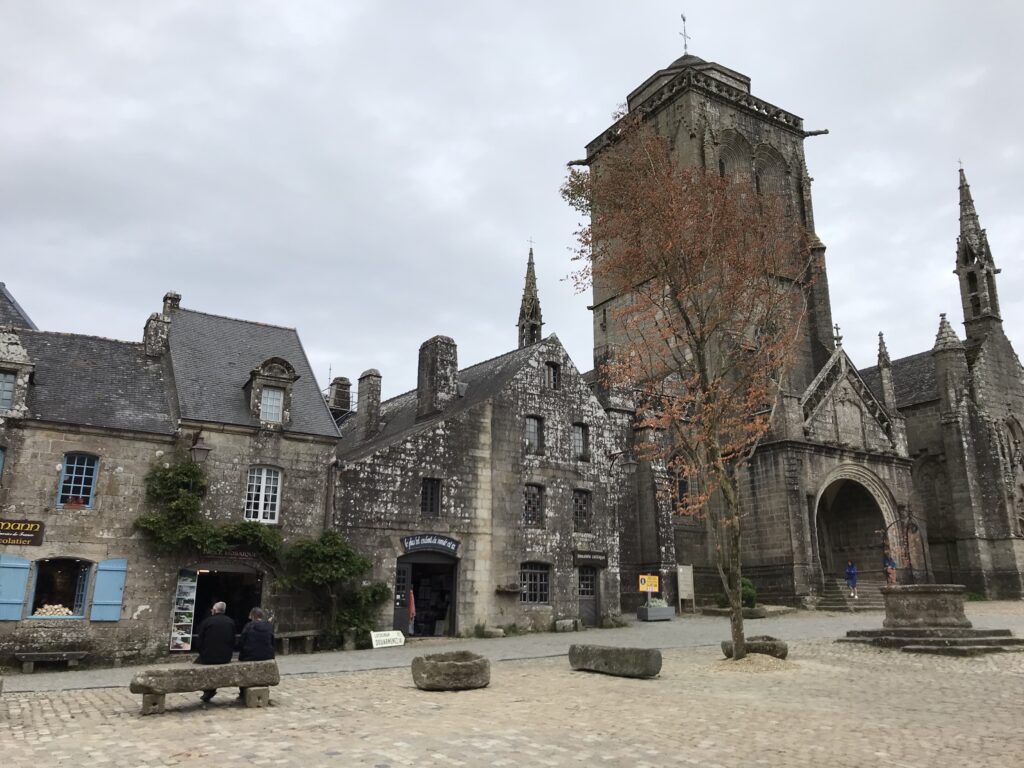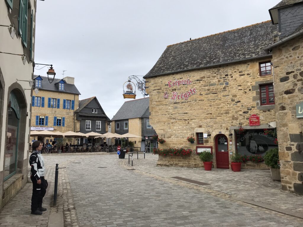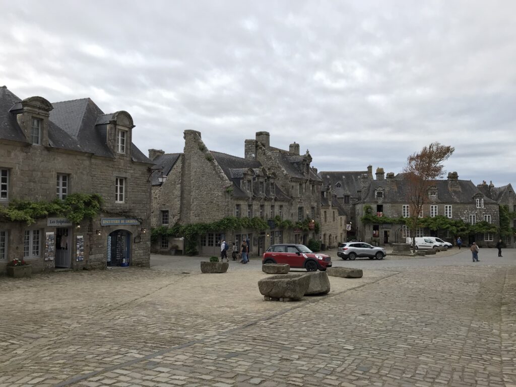 Zufällig streifen wir ein “Touristen-Highlight“: Locronan. Das mittelalterliche Dörfchen mutet etwas wie Disneyland für die ältere Generation an. Bevor wir unseren Rundgang starten, müssen wir uns jetzt endlich mal was einwerfen und schnabulieren unsere Mini-Sandwiches, gemopst vom Frühstücks-Buffet.