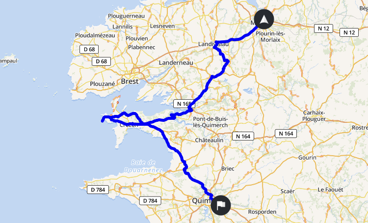 Die Route führt teilweise auf engen Straßen durch den „Parc naturel régional d‘Armorique“. In Le Faou (für uns nicht überraschend hat alles zu, außer einem Café am Platz) wird wieder ein Fotohalt für die netten schiefergetäfelten und -gedeckten Granitsteinhäuser und die kleine Bucht gemacht. Das Dorf zählt zu den schönsten Dörfern Frankreichs.
