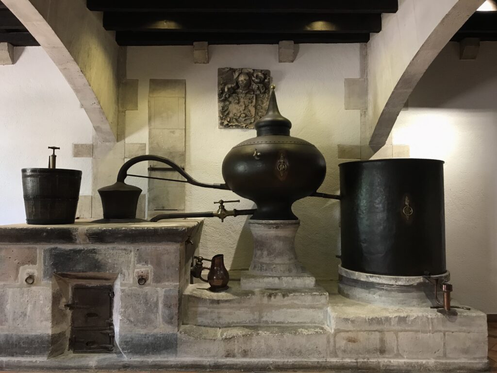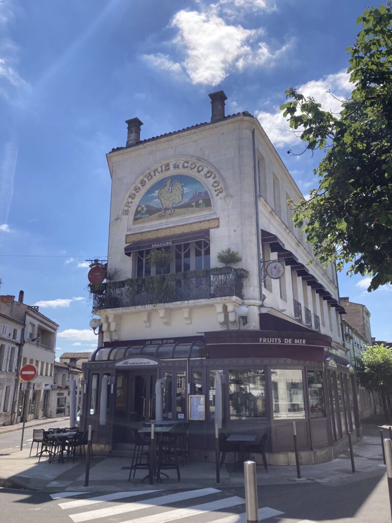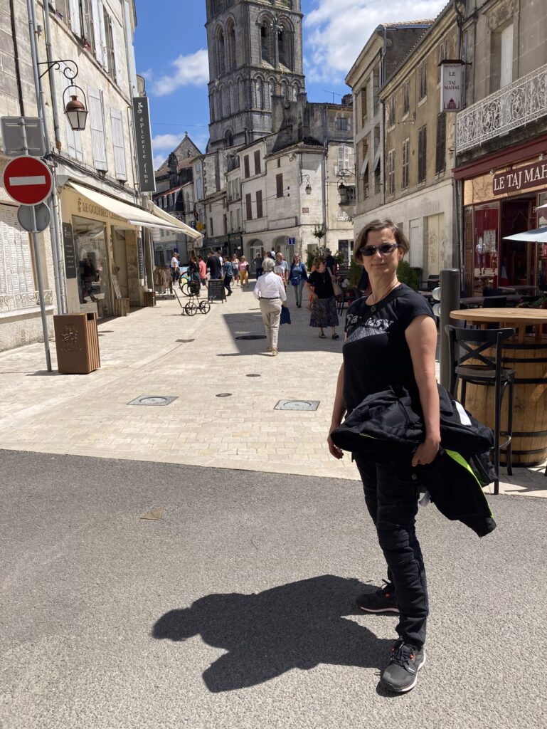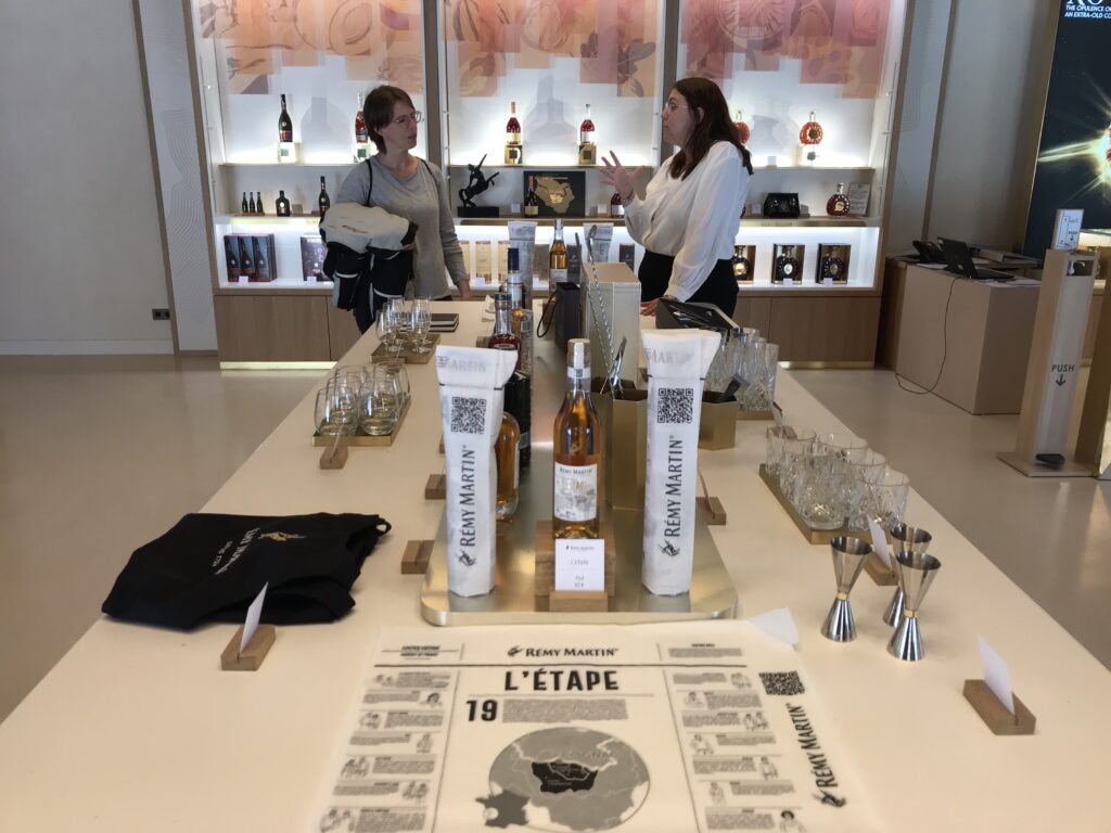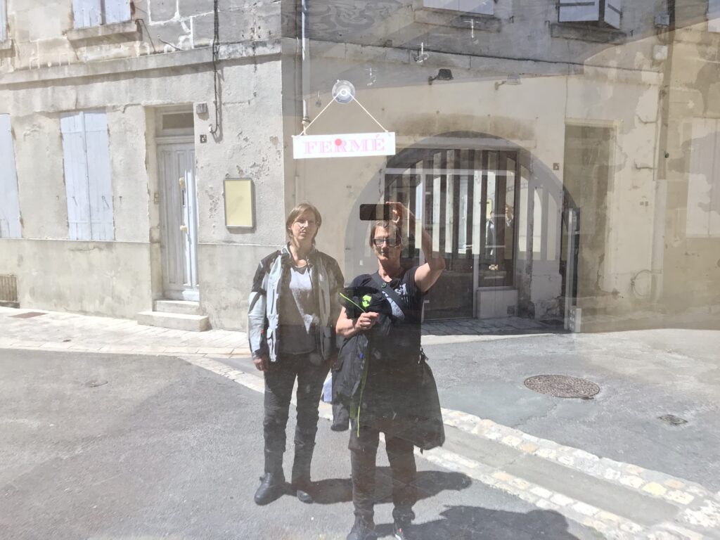 Für SB wird es Zeit für einen Cognac-Hersteller. Wir besuchen Rémy Martin in deren kleinen Boutique. Neben einem Jacobswegpilger, der sein Pferd im Garten vor der Boutique anbindet, sind wir die einzigen Gäste. Die tolle Beraterin ist wirklich engagiert und gibt ausgiebig Informationen zu den verschiedenen Produkten. SB ist ganz Ohr und wir erfahren viel über Cognac und generell Rémy Cointreau (bspw. dass zu diesem Unternehmen noch zahlreiche andere namhafte Spirituosen wie der Gin “The Botanist“ gehören). Richtig interessant ist es bei den älteren Jahrgängen. Die exklusivsten Produkte sind limitiert und nur vor Ort erhältlich. Leider können wir nichts verköstigen, da wir 1. mit dem Motorrad da sind, 2. SL beim Weinbrandtrinken immer husten muss und 3. eine Verköstigung auch hier nur mit einer Besichtigung möglich ist. SB gönnt sich einen V.S.O.P Flachmann (alle älteren Jahrgänge wären nichts für das Geschüttel und die Hitze im Gepäck).