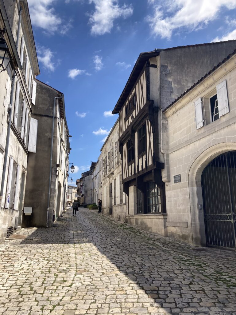 Die Charente teilt die Gemeinde Cognac in zwei Anbaugebiete: Nördlich der Charente liegt “Les Borderies“ und südlich der Charente ist die Grande Champagne und damit die „1er Cru“ (also die erste Lage des Cognacgebiets). Wie bei den namhaften Rotweinen des Bordeaux ist die Klassifizierung und damit der Preis direkt verbunden mit der Lage der verarbeiteten Trauben. Die Traubensorten sind reglementiert, ebenso der Alkoholgehalt des Cognacs. Sechs Anbaugebiete gibt es insgesamt (für Interessierte ist alles zum Thema Cognac in Wikipedia schön zusammengefasst). Unsere Unterkunft liegt in “Les Fins Bois“ – der Lage mit der größten Hektaranzahl an Weinfeldern.