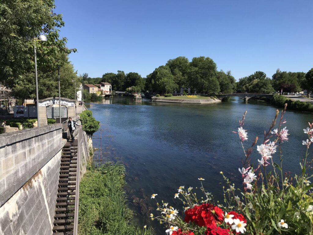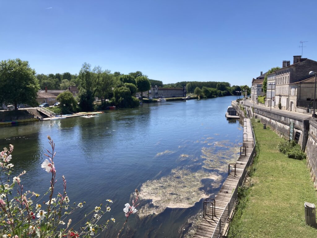 Auf dem Rückweg machen wir hinter Segonzac eine kurze Stadtbesichtigung in Jarnac. Hochgeklappte Gehwege – ah, es ist Sonntag. Wir haben endgültig das Zeitgefühl verloren ☺️. In einer Auslage der Altstadt aus Sandsteinhäusern fallen uns die “Charentaises“ ins Auge… wohl typische Hausschuhe und in Frankeich hergestellt.