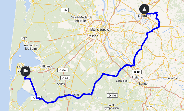 Anschließend geht es wieder schnurgeradeaus bis nach La Teste-de-Buch bei Arcachon, unserem Tagesziel.