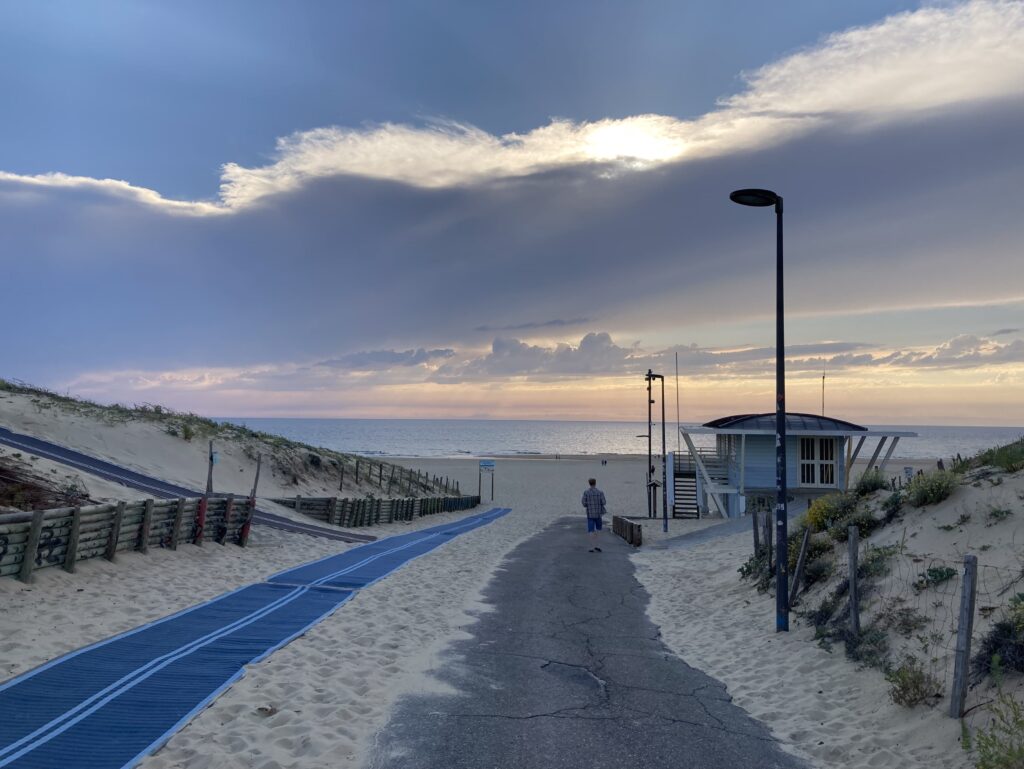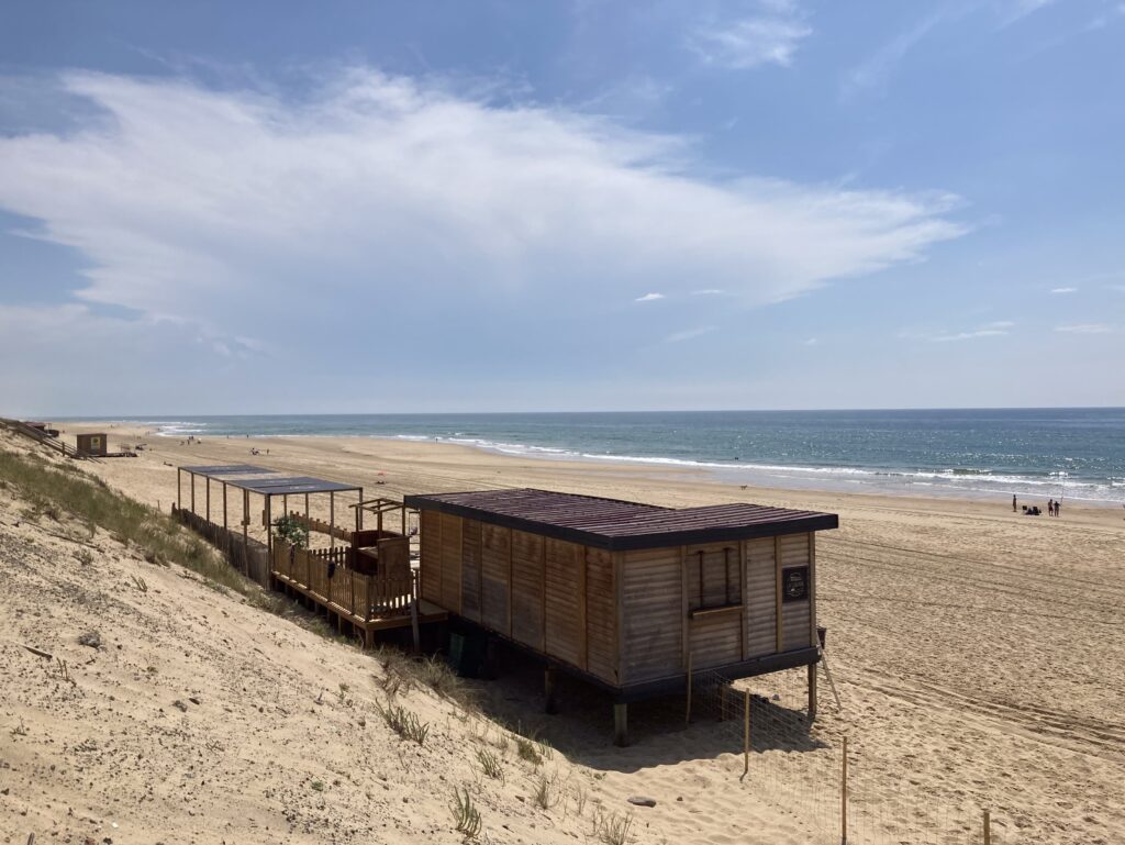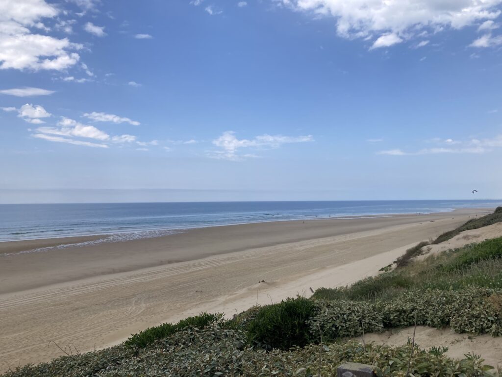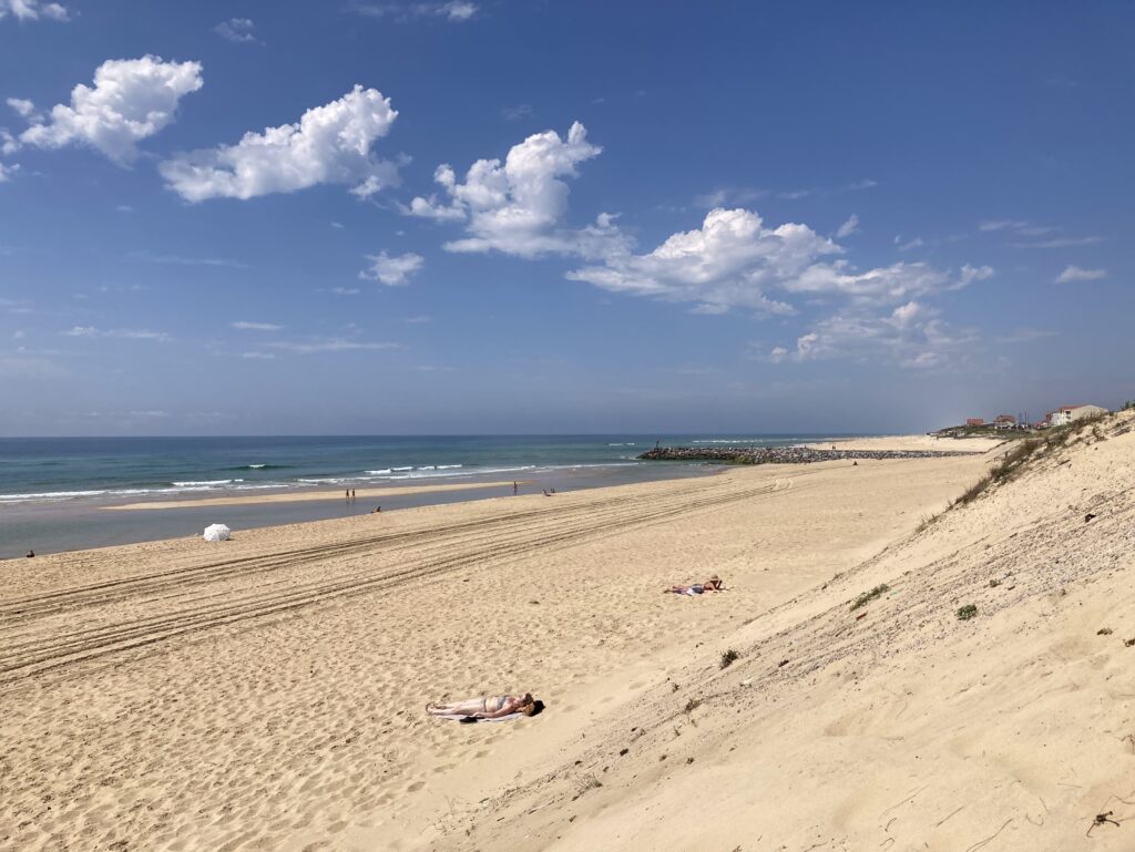 Weiter geht es durch Kiefernwälder auf teils einsamen Landstraßen und nur unterbrochen durch weitere Strandorte. Wir machen nochmal einen Strand- und Fotostop in Mimizan und bewundern den endlos langen weißen Sandstrand.