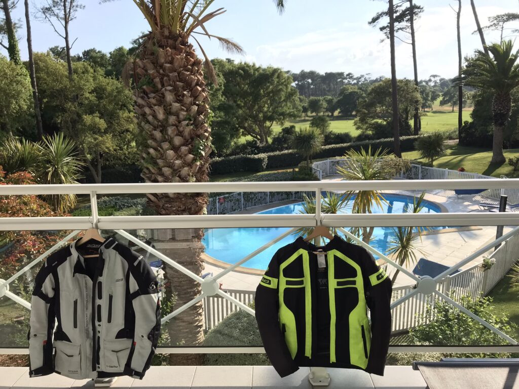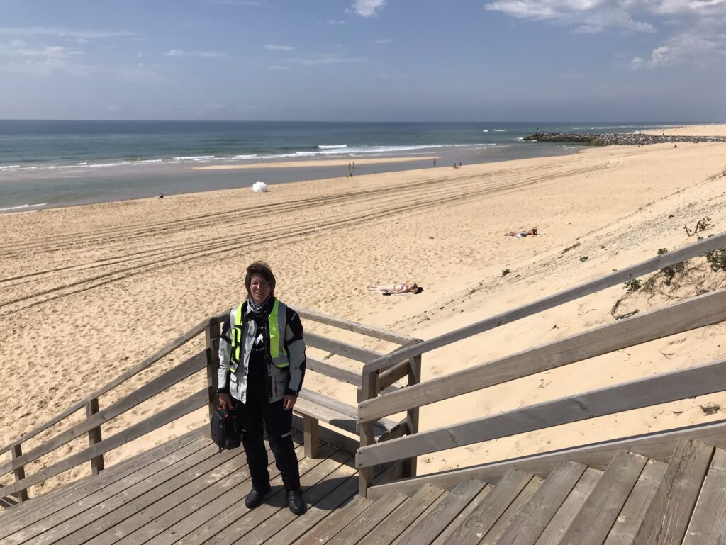Es hat in der Nacht geregnet, morgens ist es trocken – das gute Wetter ist uns wiedermal hold. Wir starten etwas zeitiger zunächst zu einem Motorradbekleidungsgeschäft in La Teste-de-Buch. Es muss Abhilfe geschaffen werden, bevor SB – wegen Hitzestau – vom Motorrad fällt. Wir haben Glück und finden die perfekte Sommerjacke, die nun besser den Kurvenwind durch lässt.