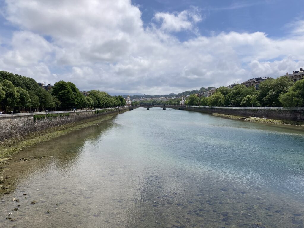 Wir kommen wieder am Strand Zurriola und der Brücke über den Fluß Urumea Itsasadarra vorbei.