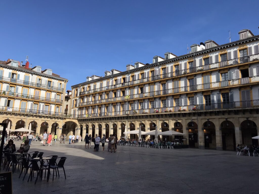 Auf dem historischen „Konstituzio Plaza“ erkennt man an den nummerierten Balkonen, dass der Platz früher als Stierkampfarena gedient hat.