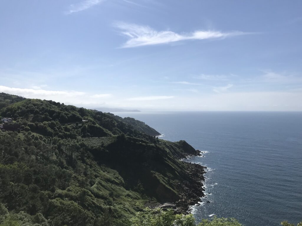 Ziel ist der Ausflugshügel Monte Igueldo am anderen Ende der Bucht. Gott sei Dank können wir den Aufstieg durch die alte Standseilbahn beschleunigen. Es ist die älteste Seilbahn des Baskenlandes und bringt seit 1912 Ausflügler in roten hölzernen Wagons auf den historischen Vergnügungsberg. Die Aussicht von dort oben ist grandios mit Weitblick bis zu den Pyrenäen.