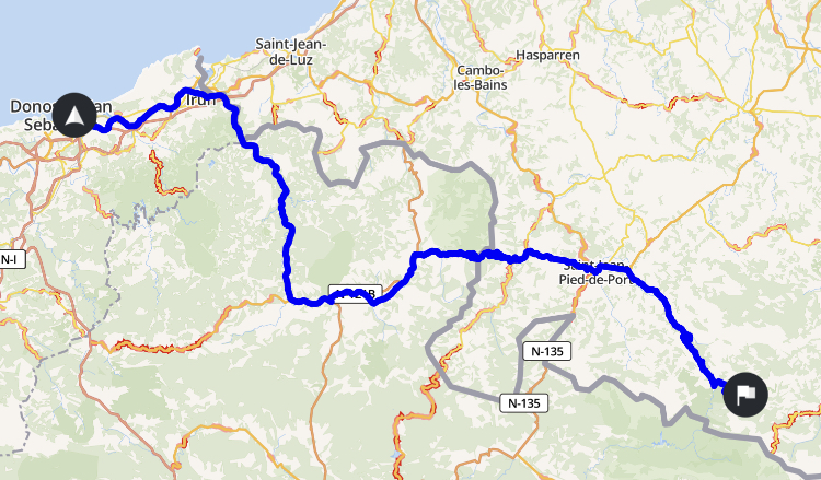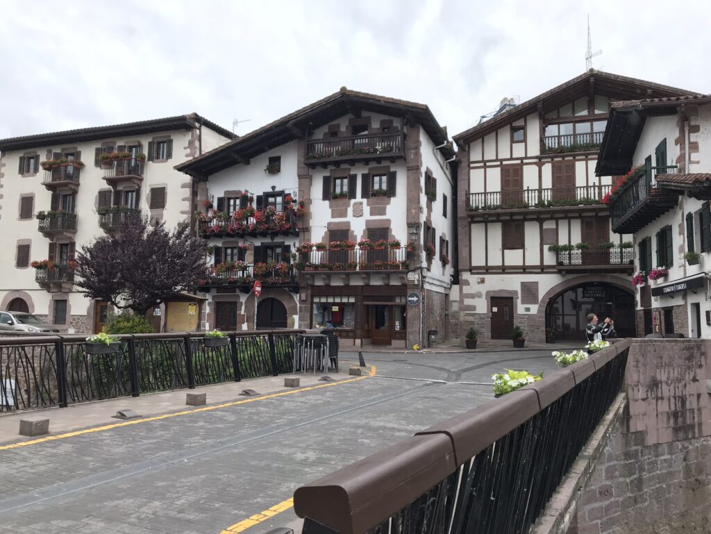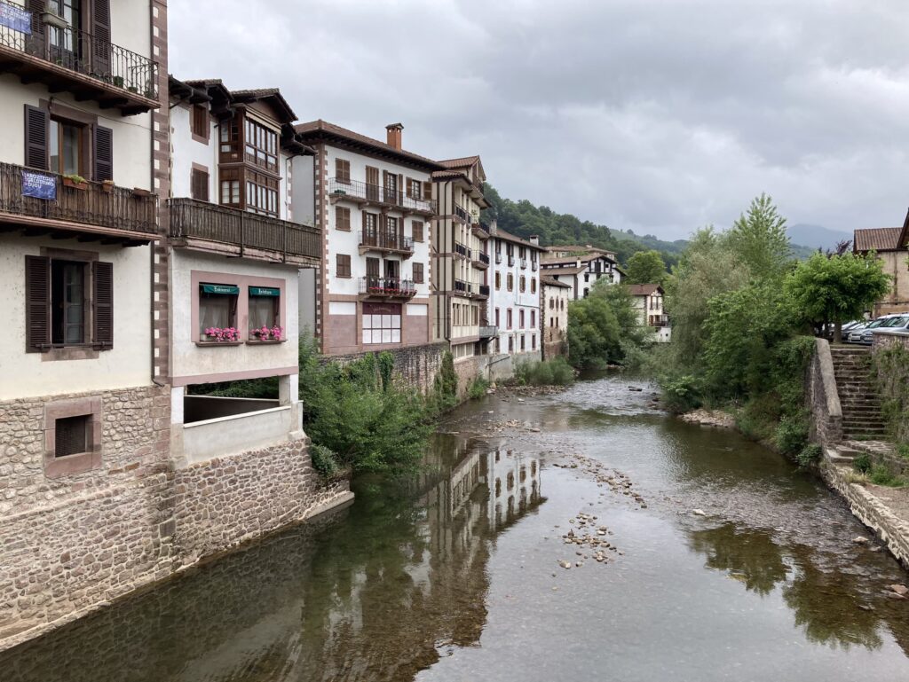 Bis in den Morgen hat es geregnet und wir starten bei Nieselregen durch einigen Verkehr raus aus der Großstadt Donostia (der baskischer Name für San Sebastián. Im spanischen und französischen Baskenland sind beide Schreibweisen auf den Ortsschildern, wobei das Baskische die offizielle Sprache ist). Vorbei an Irun und durch Ohebrio auf der breiten N-121-A und N-121-B erstmal in Richtung Elizondo (Spanien). Bis dahin geht es fantasielos, aber trocken über eine Schnellstraße bis wir den kleinen Ort erreichen und dort für einen Spaziergang und eine Pause anhalten.
