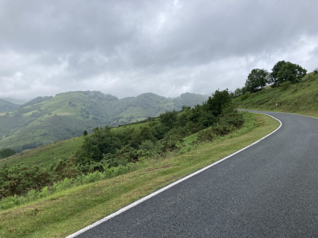 Weiter geht es auf der D15 durch Saint-Jean-Pied-de-Port und auf der D933 durch Saint-Jean-le-Vieux. Mit der D18 nehmen wir den Col d‘Haltza und den Col d‘Haritzcurutche mit, bevor es anspruchsvoller zum Col de Burincurutcheta geht. Jede Kurve nehmen wir mit Bedacht, denn es könnte rutschig sein… Kies, Split, frische Hinterlassenschaften von allen möglichen Paarhufern und Pferden.