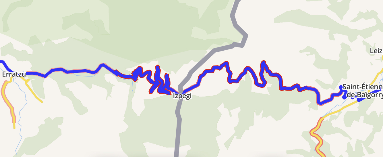 Weiter geht es auf der D15 durch Saint-Jean-Pied-de-Port und auf der D933 durch Saint-Jean-le-Vieux. Mit der D18 nehmen wir den Col d‘Haltza und den Col d‘Haritzcurutche mit, bevor es anspruchsvoller zum Col de Burincurutcheta geht. Jede Kurve nehmen wir mit Bedacht, denn es könnte rutschig sein… Kies, Split, frische Hinterlassenschaften von allen möglichen Paarhufern und Pferden.