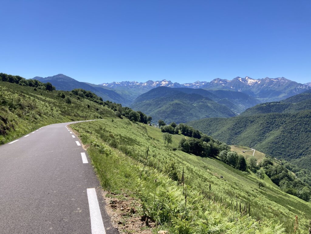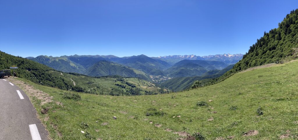 Wir schlängeln uns wieder nach unten und fahren über Saint-Aventin und Bagnères-de-Luchon ins Tal. Im letzteren Ort nehmen wir die D125 nach Norden via Cierp-Gaud. In Fronzac geht es auf der D618 durch Wald, Schatten und kleine Dörfer über Cazaunous und den Col de Portet-d’Aspet nach Aucazein, unserem Tagesziel.