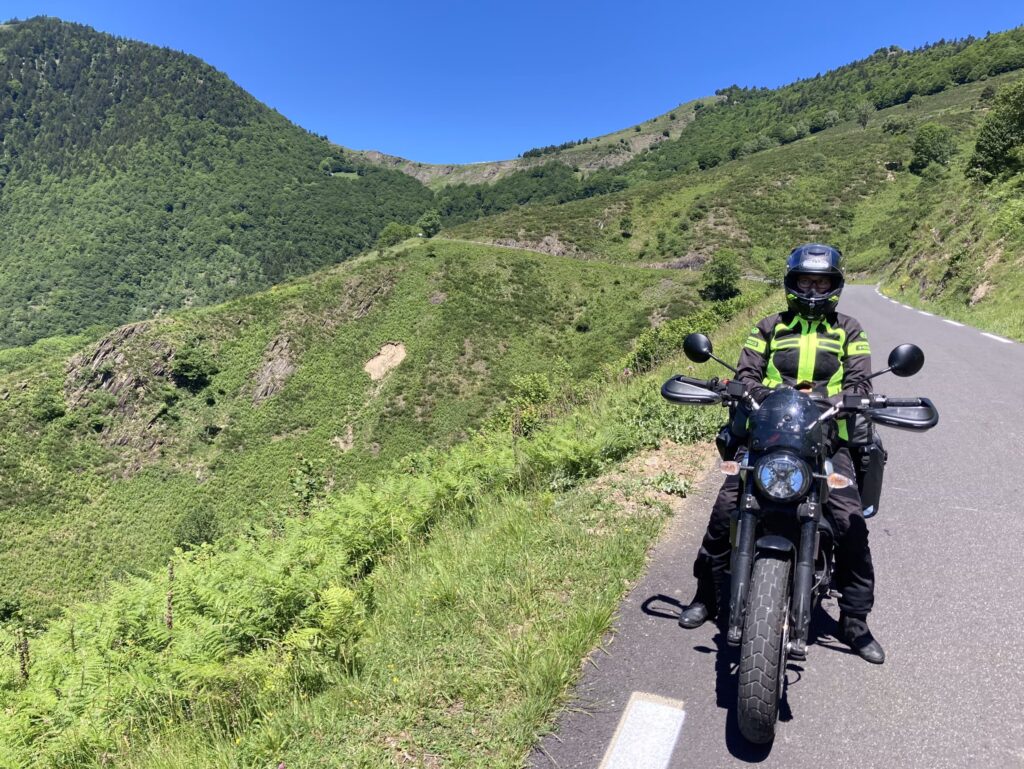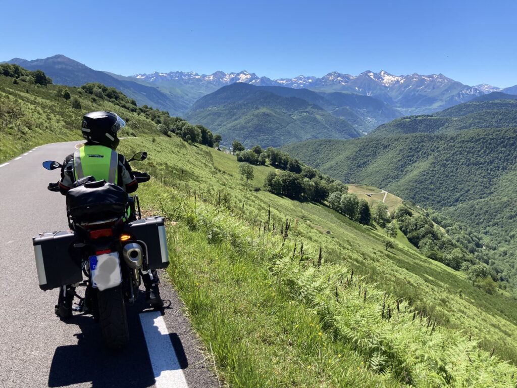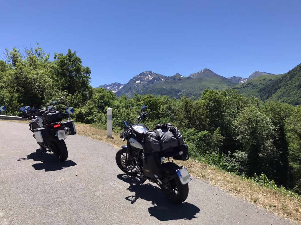 Lourdes fanden wir total enttäuschend und so freuen wir uns wieder auf die Pyrenäen mit ihren Spitzkehren. Das Wetter ist phantastisch und wir haben eine Route mit ein paar Cols (Pässen) in unserem Sinne gewählt. Diese überschneidet sich fast durchgehend mit der Streckenführung der Tour de France und so teilen wir uns häufig den Asphalt mit Rennradfahrern, vor denen wir den größten Respekt haben. Es fällt auf, dass es sich mehrheitlich um Männer mittleren Alters handelt. Die Frauen mittleren Alters fahren ja auch lieber Motorrad… Mit ordentlich Schutz auf der Haut. Bergab sind die Jungs in ihren Lycrahöschen stellenweise nicht viel langsamer als wir. Man will sich so einen Sturz echt nicht vorstellen.