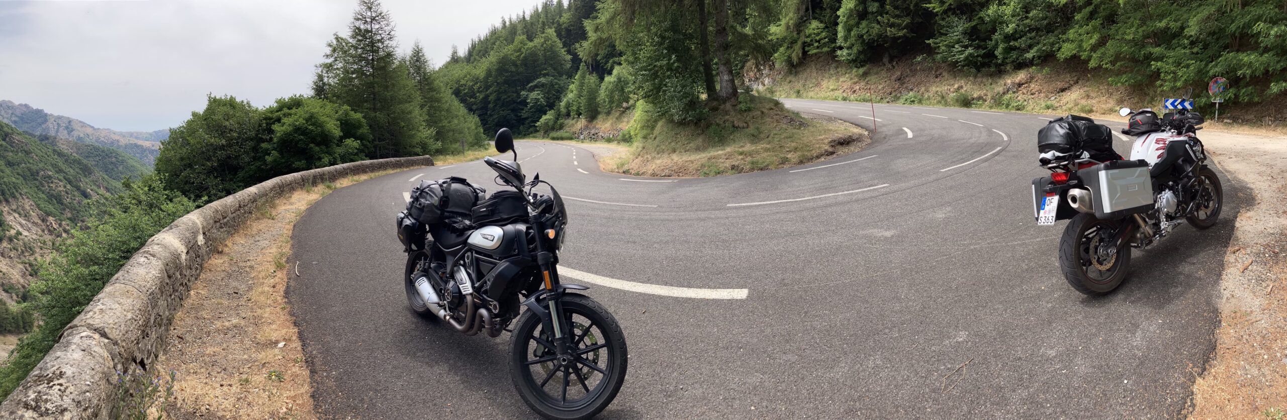 Es geht zunehmend in die Höhe zum Mont Aigoual. Auf toller Straße üben wir Haarnadelkurvenfahren bis zum Skiort L‘Esperou. Die engen Kehren klappen mittlerweile ohne anschließenden Unterwäschewechsel 😎.
