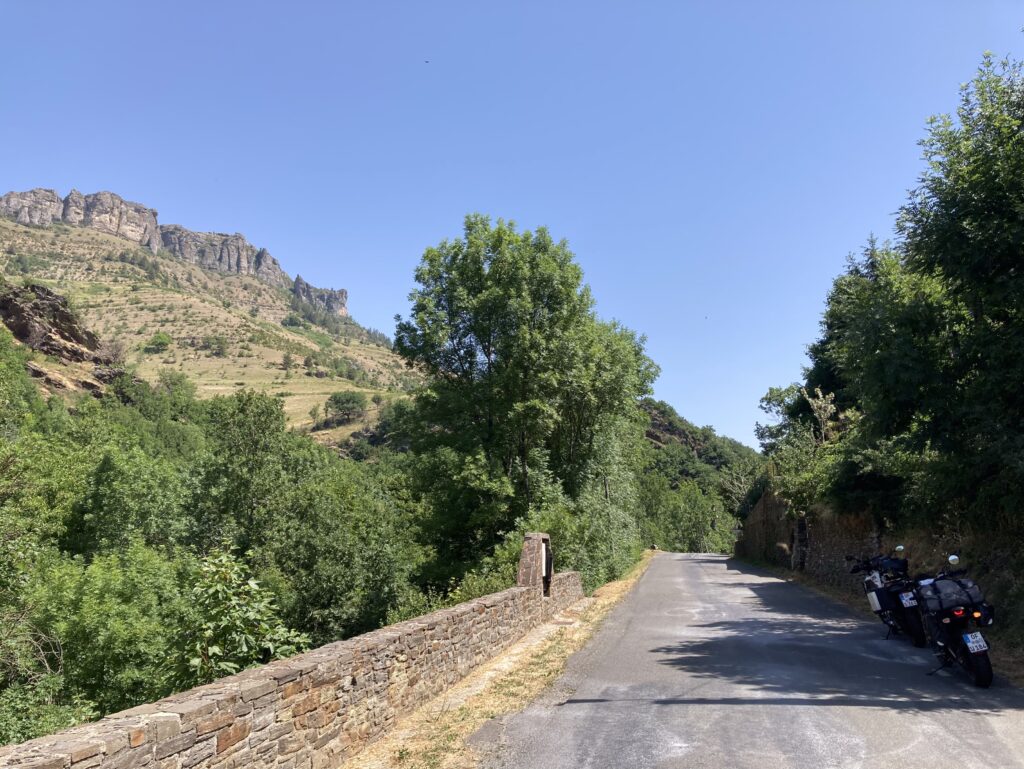 Bei noch moderaten 27 Grad ist die D996 zunächst unser Asphaltband mit toller Aussicht, dann die D907 den Tarnon entlang. Vorbei an und durch hübsche Dörfer wie Vébron.