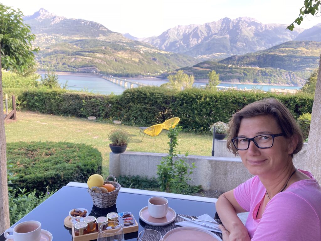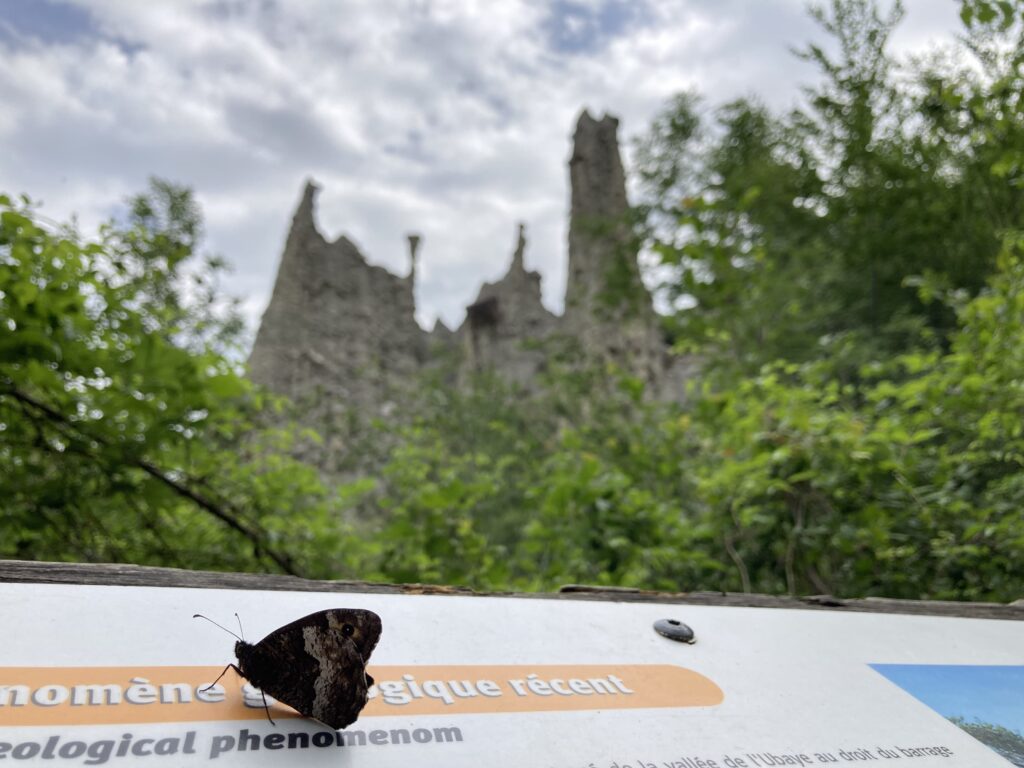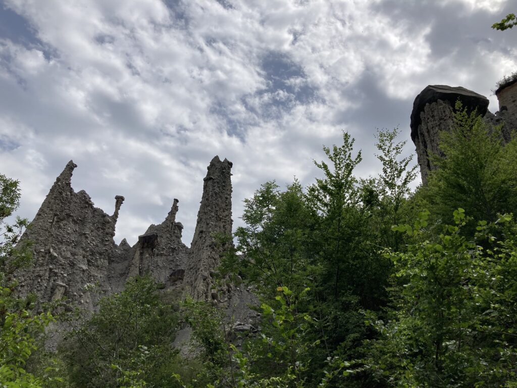 Tag 3 (28. Juni): Frühstück mit Blick auf den See, chillen. Kurz vor Wetterumschwung schwingen wir uns auf die Moppeds für einen Mini-Ausflug zu den “Demoiselles Coifées“ – den haarigen Damen, einer eigentümlichen durch Erosion entstandenen Erde-Felsenformation.