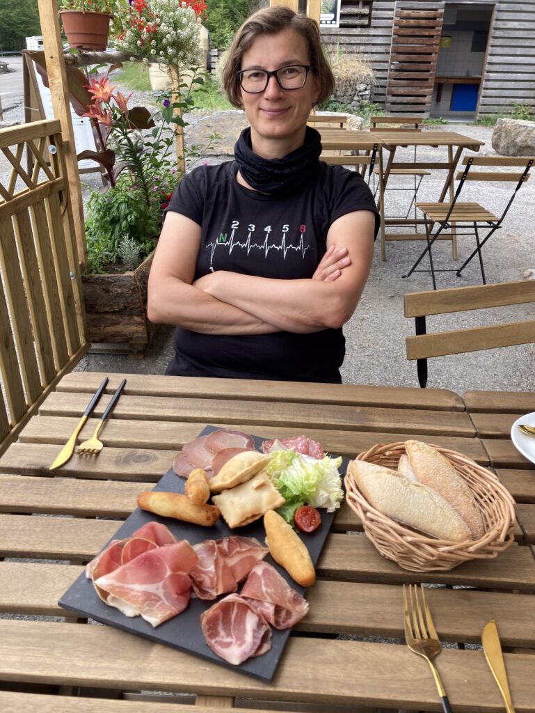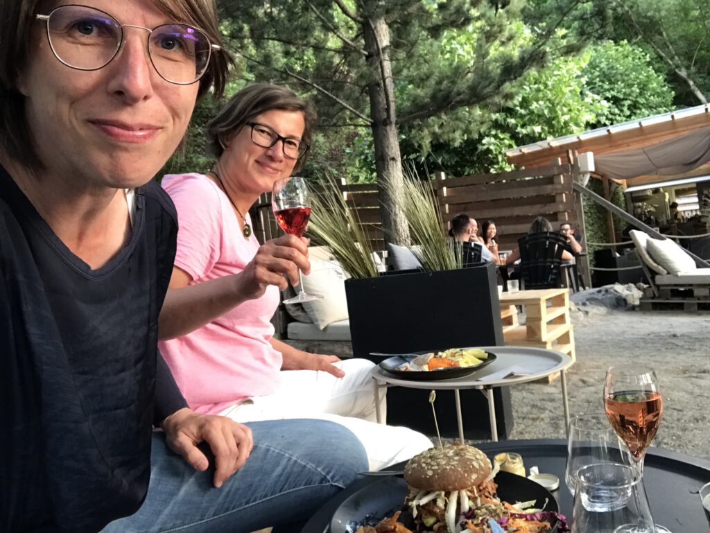 Nun geht es die 11 Kilometer wieder zurück und der Himmel zieht zunehmend zu. Das hält uns nicht davon ab, an dem ansprechenden Straßen-Bistro bei den „haarigen Damen“ nochmal für eine Brotzeit einzukehren.