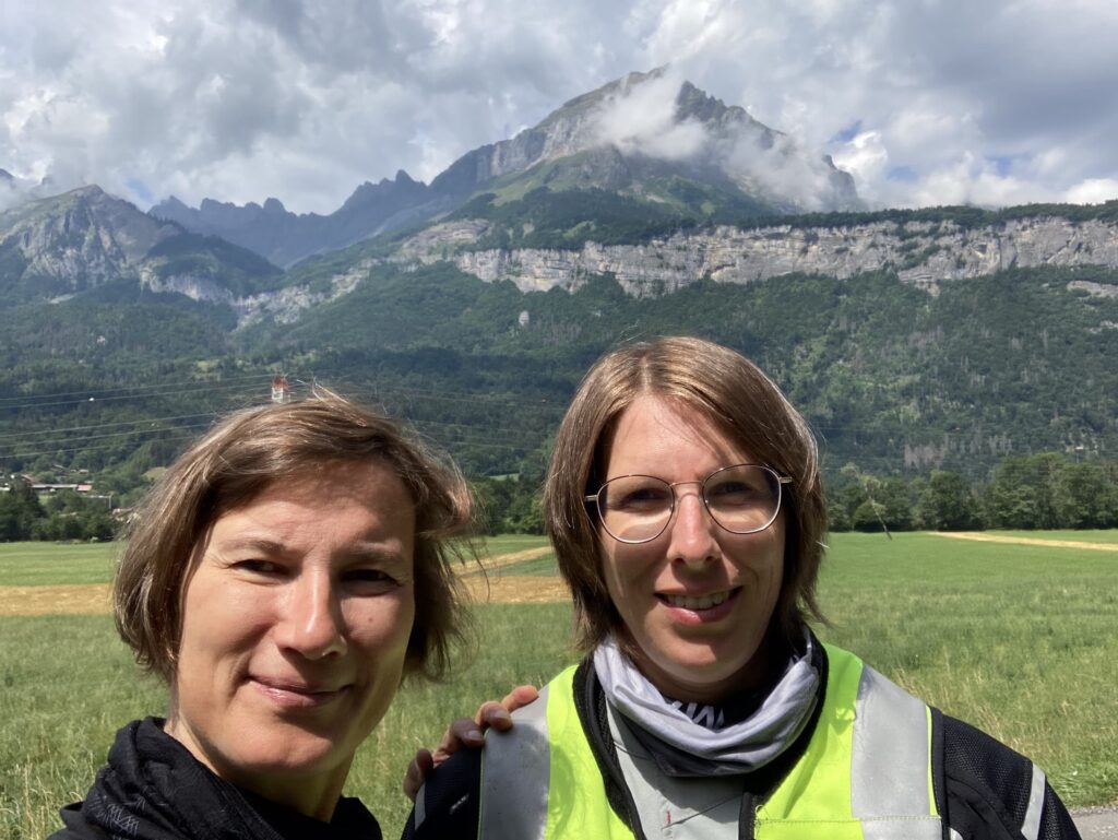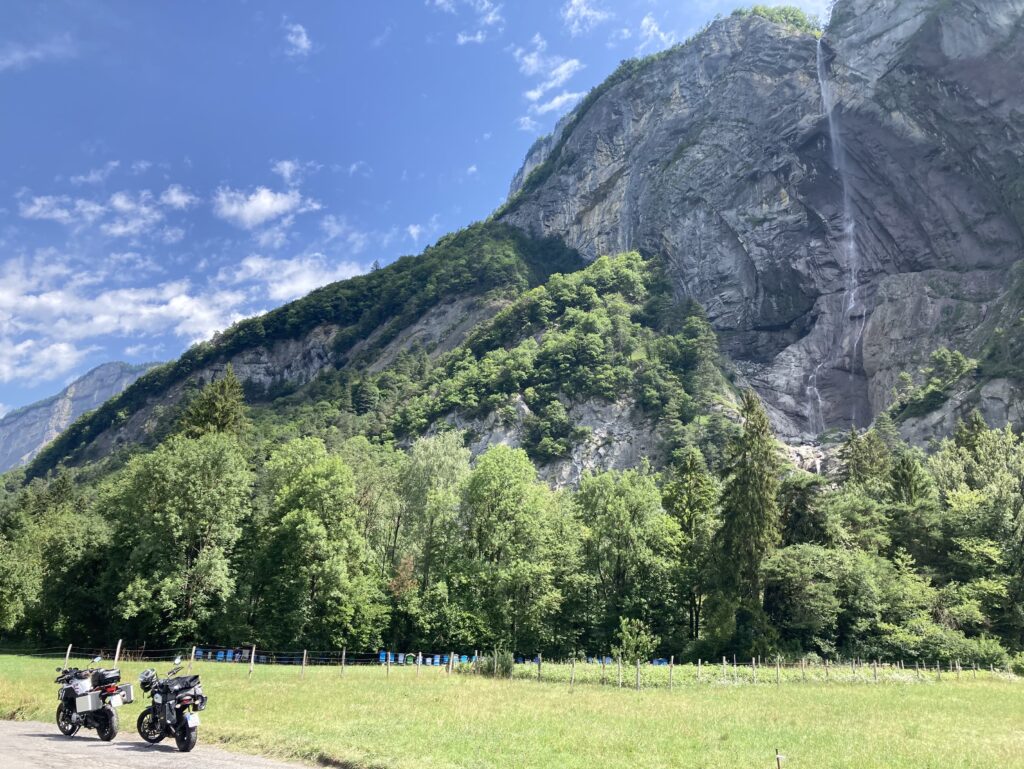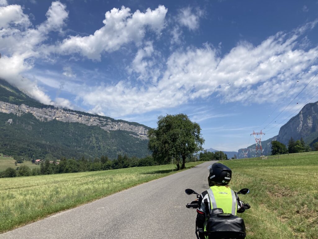Gestärkt vermeiden wir die stark befahrene Nationalstraße vom Hinweg nach Chamonix und schrauben uns erst durch kleinere Skiorte auf Ministraßen nach oben und dann über Haarnadelkurven wieder runter. Weiter geht es auf kleineren Landstraßen entspannt durch Wald und Wiesen und durch die Gebirgstäler.