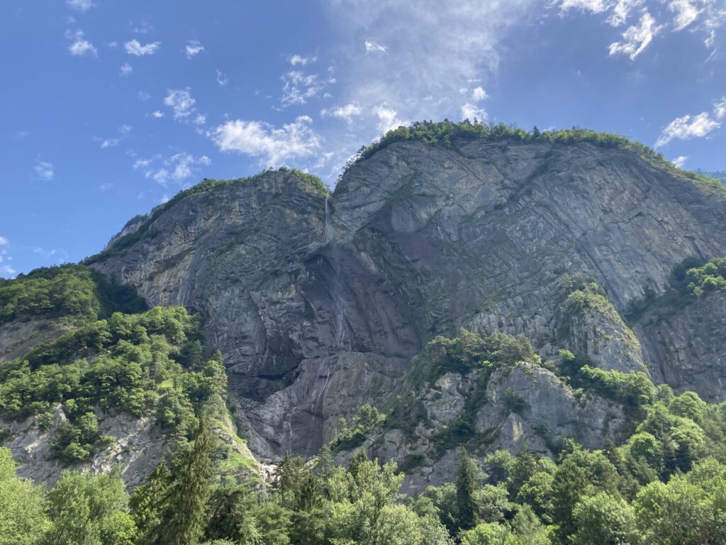 Hinter Sallanches fällt für uns aus dem Nichts plötzlich ein toller Wasserfall herunter!