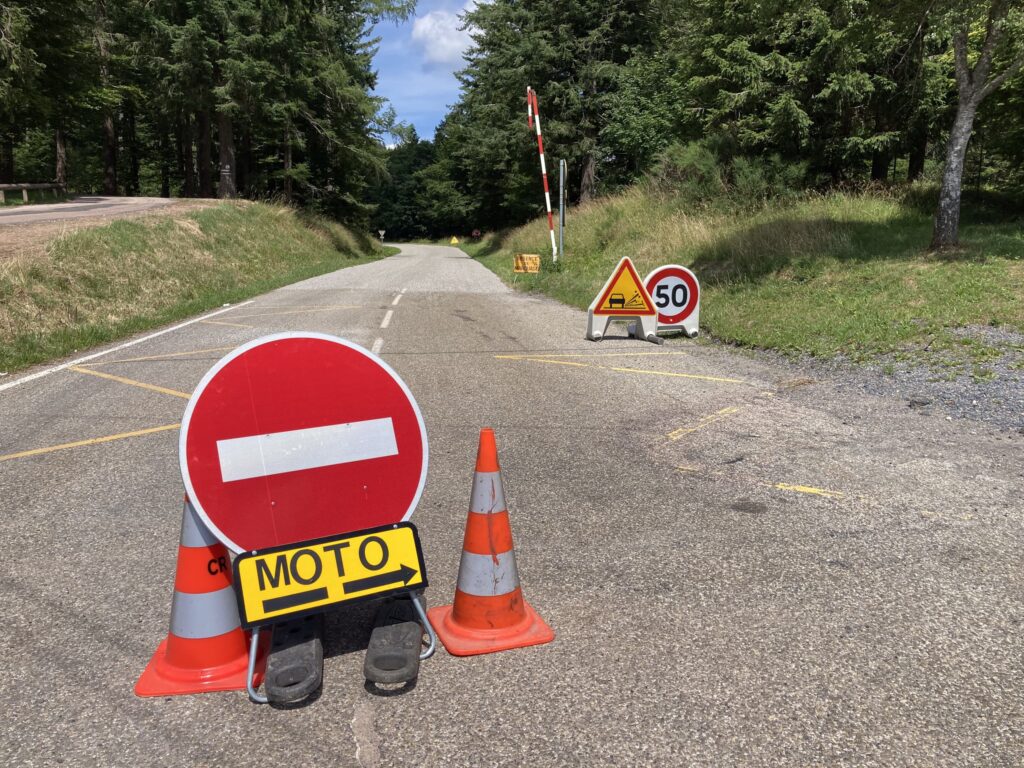 Wir starten mit Sonne und passablem Wetter, aber mit gedämpfter Stimmung. Der Vogesen-Hauptkamm – die alte Militärstraße aus dem 1. Weltkrieg – soll es heute sein. Die ersten 45 km geht es moderat in Optik und Tempo bis Cernay. Ein kleines Highlight sind die vielen Störche, besonders um Lacharelle herum. Die D431 ab Cernay beginnt allerdings erstmal eng und mit schlechtem Straßenbelag inklusive Kopfsteinpflasterpassagen. Erfreulicherweise ist kaum Verkehr. Die Strecke führt mehrheitlich durch Wald mit wenig Aussicht.