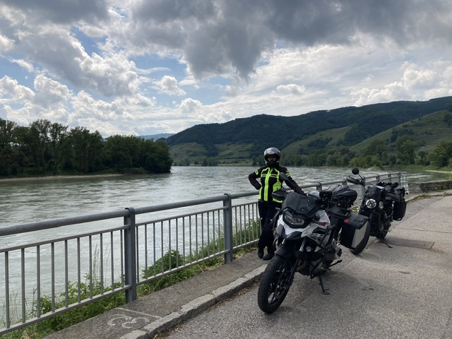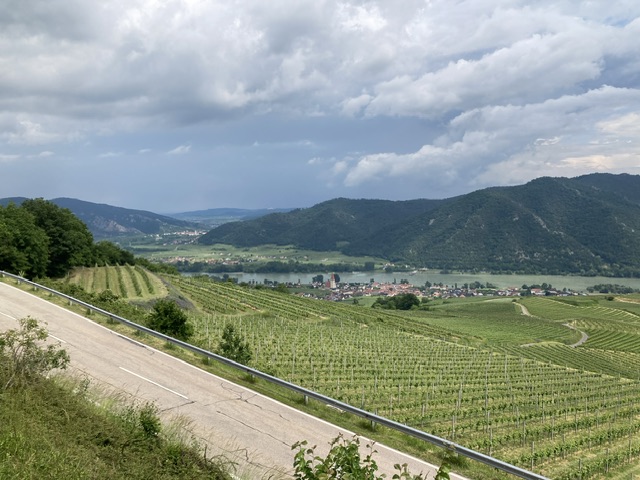 Nach dem Mittag geht es dann los. Zunächst drehen wir eine kleine Runde durch die Wachau und fahren die Donau entlang zurück nach Krems. Dort über die Mauterner Brücke – ein markantes Stahlfachwerk Bauwerk.