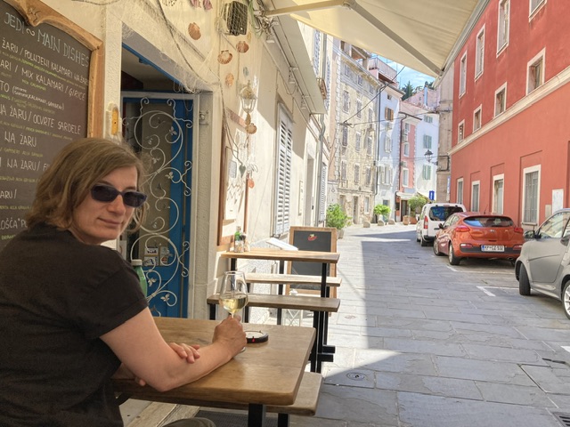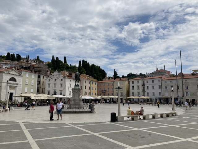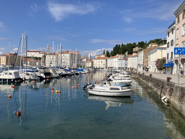 Das eher maue Frühstück lenkt uns nicht von unserer Freude auf einen sonnigen Tag am Meer und in Piran ab. Doch zunächst… Regen… 😄. Es trocknet schnell wieder und wir ziehen los. Wieder geht es den Küstenweg entlang in die Altstadt.