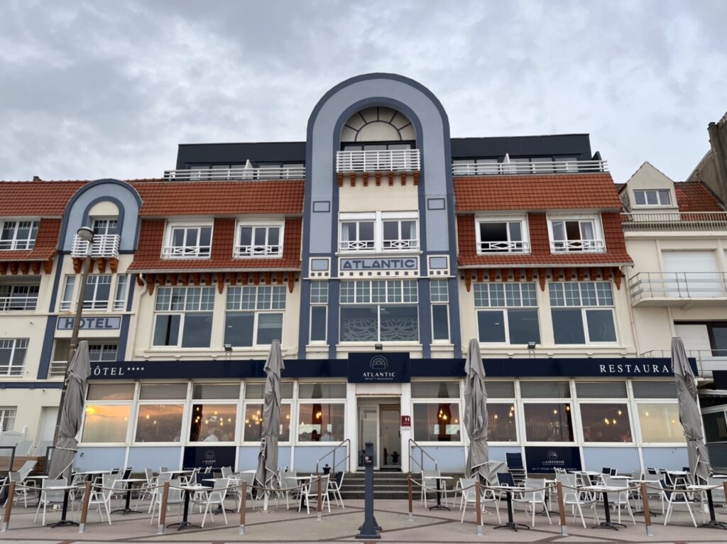 Beim Hotel Atlantic in Wimereux haben wir reserviert und mogeln uns an der Schranke vorbei auf den Parkplatz. Der Concierge hat das wohl beobachtet und kommt direkt raus mit einem halbleeren Mülleimer den er vorgibt zu leeren, um uns abzuchecken. Er macht das ganz charmant erst in schnellem Französisch (wir: wie bitte?) und dann als „Welcome to the Hotel Atlantic“, um zu signalisieren, dass wir wohl besser eine Reservierung haben, wenn wir dort parken 🤓.