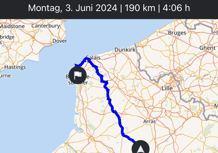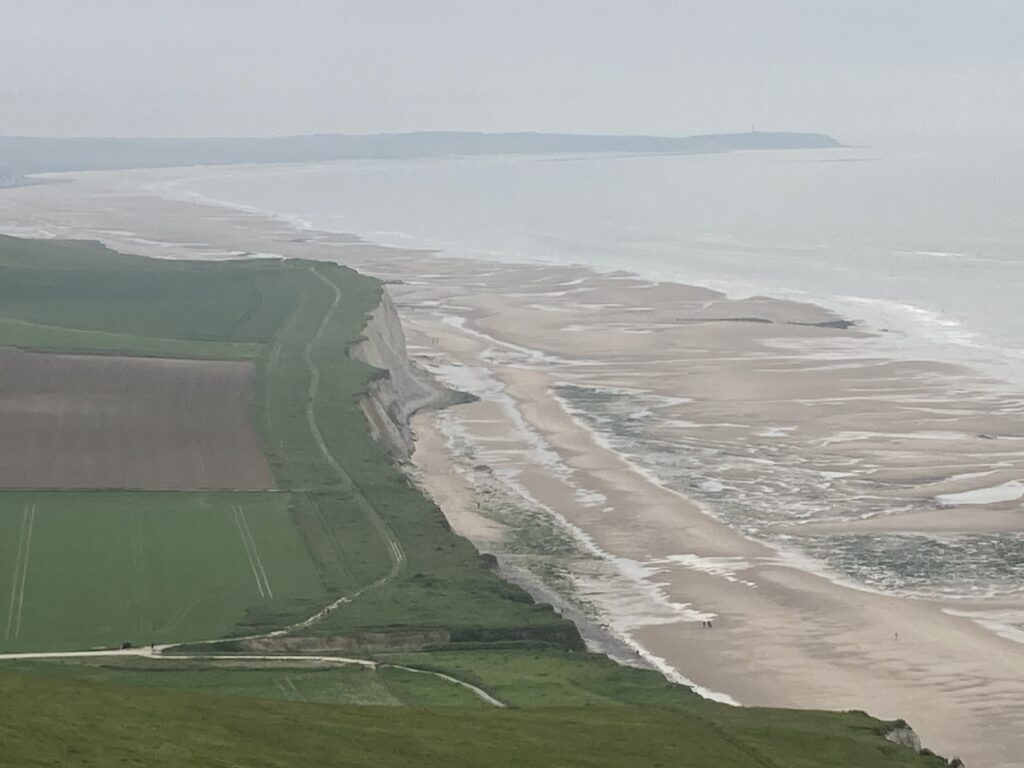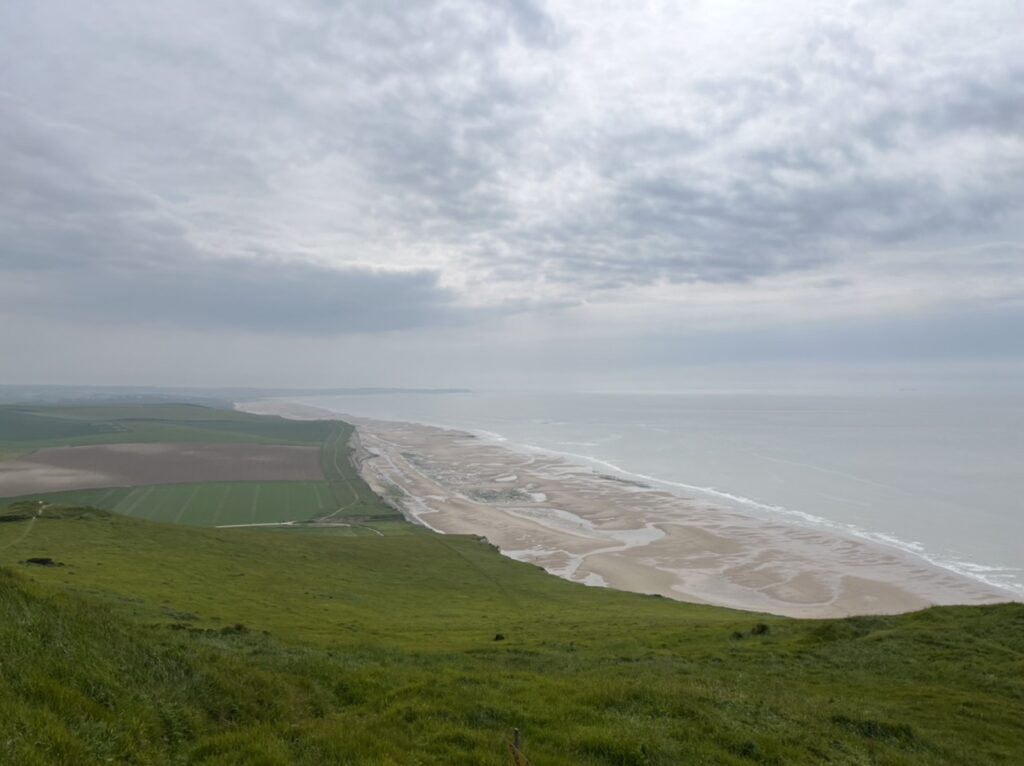 In Sangatte südlich von Calais erreichen wir die Küste und setzen unseren Weg auf der Küstenstraße Richtung Westen fort. Es folgen zahlreiche Stopps für Ausblicke. Beispielsweise beim Cap Blanc-Nez und beim Cap Gris-Nez.