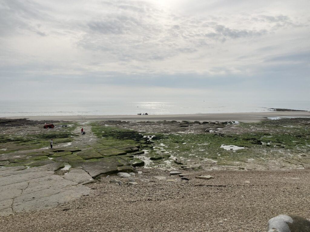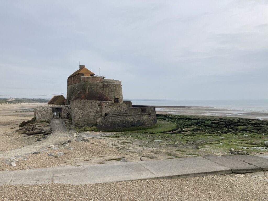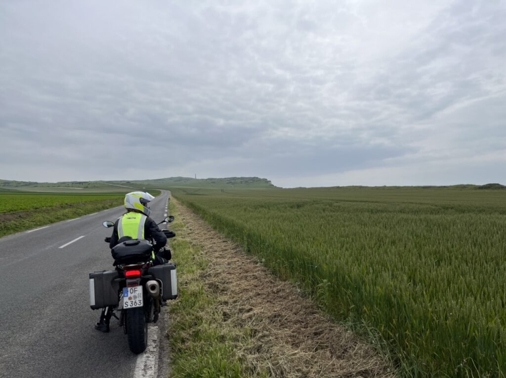 Ambleteuse mit seinem Fort im Wasser hatten wir etwas ansehnlicher erwartet. Aber generell ist die Opalküste vom Motorrad aus gesehen sehr grün, die Steilküsten erahnt man von oben oder aus der Ferne. Es gibt viele Schafe und ganze Landstriche, in denen man noch die Granatenkrater aus dem 2. WK deutlich sieht, ebenso wie zahllose Wehrmachts-Bunker am Strand und in Küstennähe.