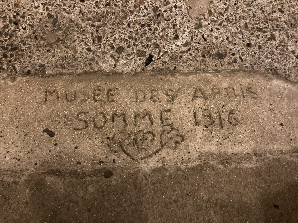 In Albert gibt es ein Museum unter der Erde in Tunneln aus dem 13. Jahrhundert, die den Bewohnern im 2. WK als Zuflucht vor Bombenangriffen der Alliierten gedient haben. In diesen Tunneln ist ein Museum eingerichtet, dass das Leben in den Schützengräben des 1. WKs entlang der Schlachtfelder der Somme beschreibt. Auch hier bleibt man sprachlos, angesichts der unveränderten Bereitschaft zur Gewalt weltweit, wenn man sich die dort explizit beschriebenen Einzelschicksale einiger Soldaten ansieht.