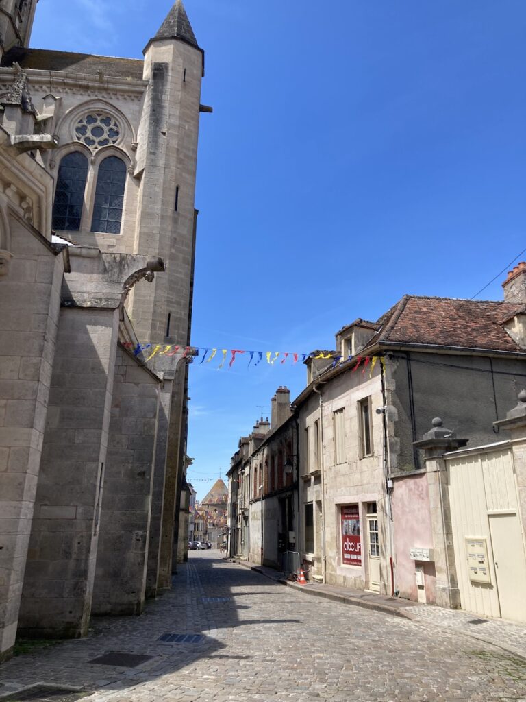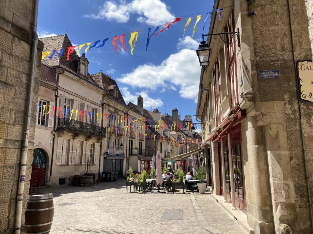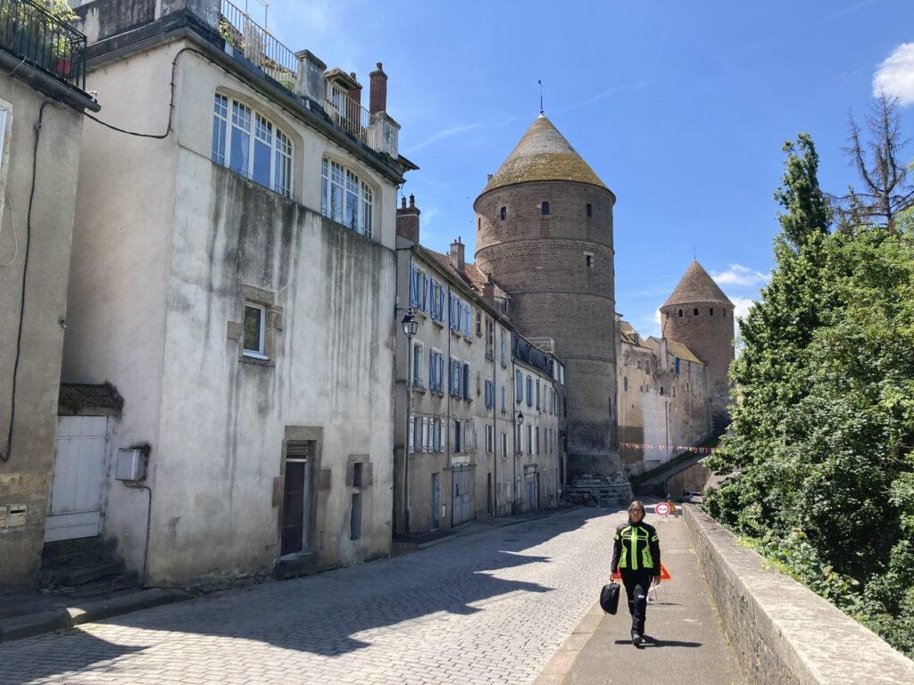 Wir düsen zwischen Feldern und Wiesen und Dörfern nach Semur en Auxois. Dort trinken wir bei erster Gelegenheit bei einem Intermarché in einem netten Bistrot erstmal einen Espresso und kaufen Verpflegung für den morgigen Tag.