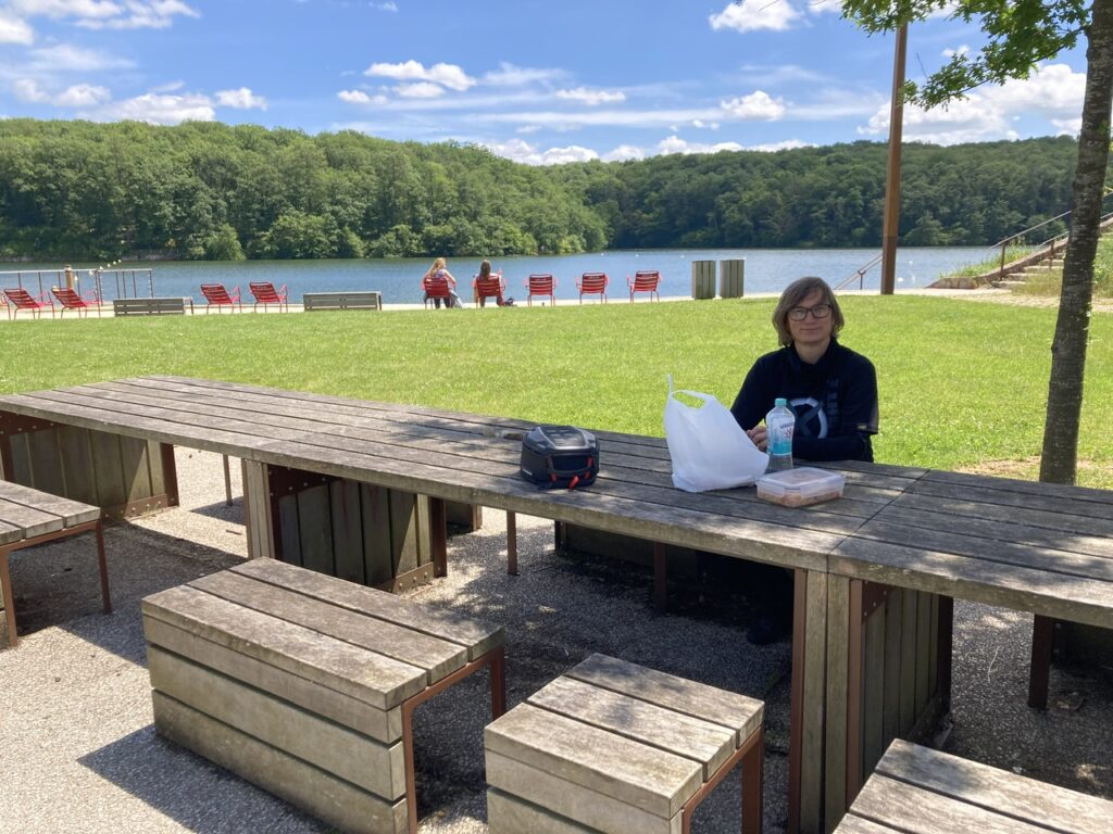 Wir wollen am Lac des Settons vorbei fahren und erhoffen uns einen schönen Anblick. Den gibts da nicht in der Vorbeifahrt, aber dafür kreuzen zwei Wildschweine mit ihren Frischlingen unsere Bahn. Sie sind ganz unerschrocken und etwas keck, das war so niedlich, dass wir vergessen haben zu knipsen.