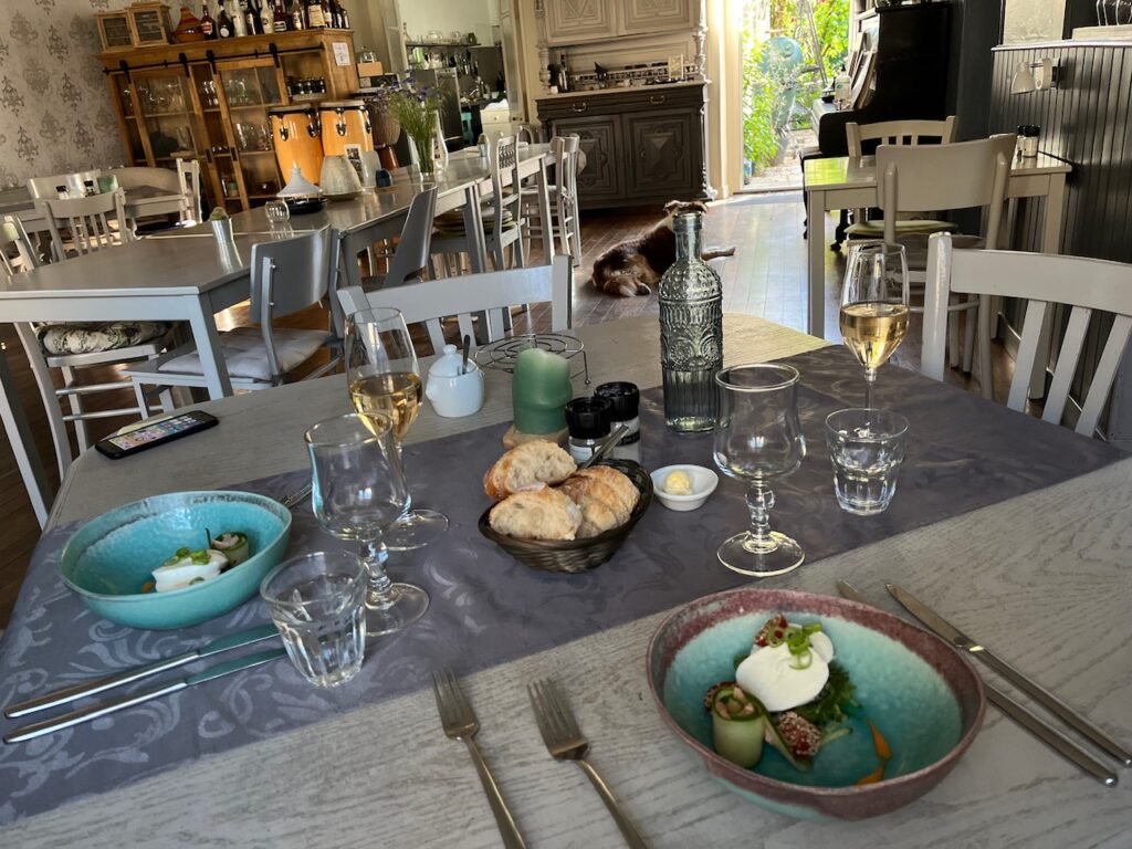 Endlich kommen wir in Lucenay-lʼÉvêque, einem Dorf östlich von Autun, an. Die Unterkunft in einem renovierten Hotel ist hellhörig, aber top. Herzliche Gastgeber (Niederländer, die den Schritt nach Frankreich gewagt haben), zwei süße Hunde und ein wirklich hervorragendes Essen entschädigen uns für den Reinfall von gestern.
