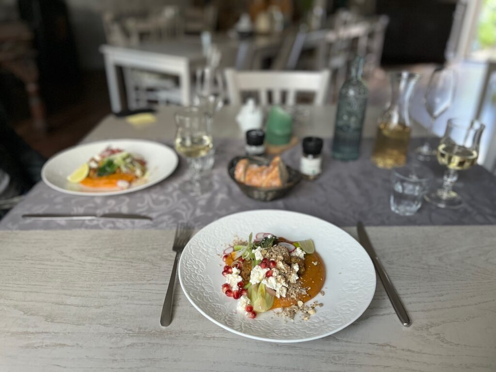 Wir genießen den Abend mit sehr gutem Essen und einem Glas Wein im ehemaligen Restaurant und sind zufrieden.