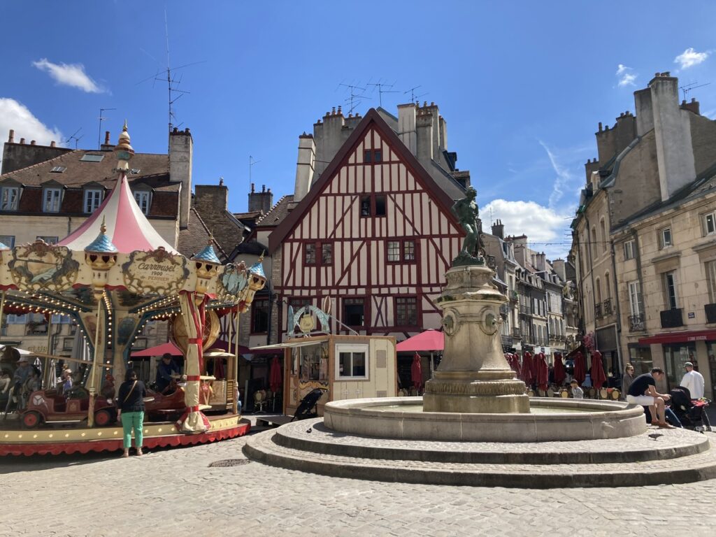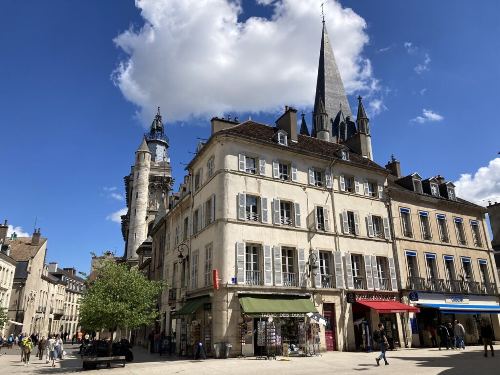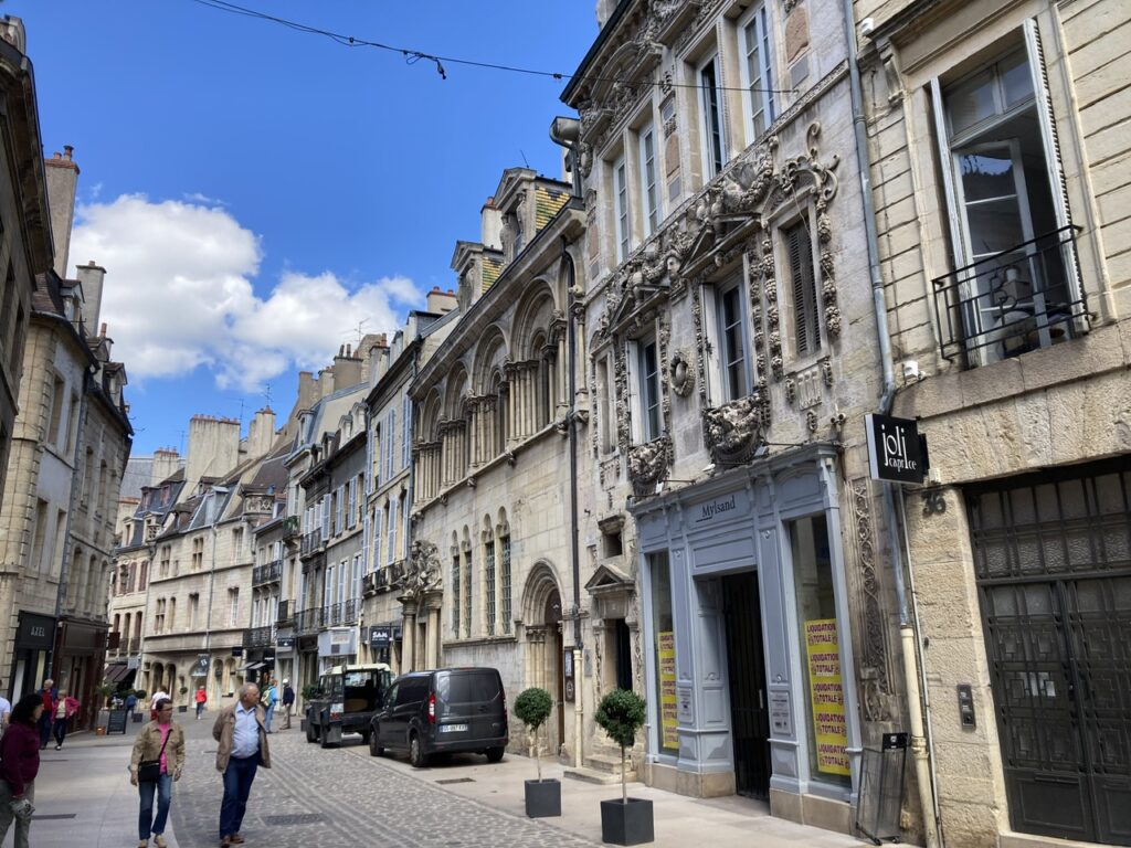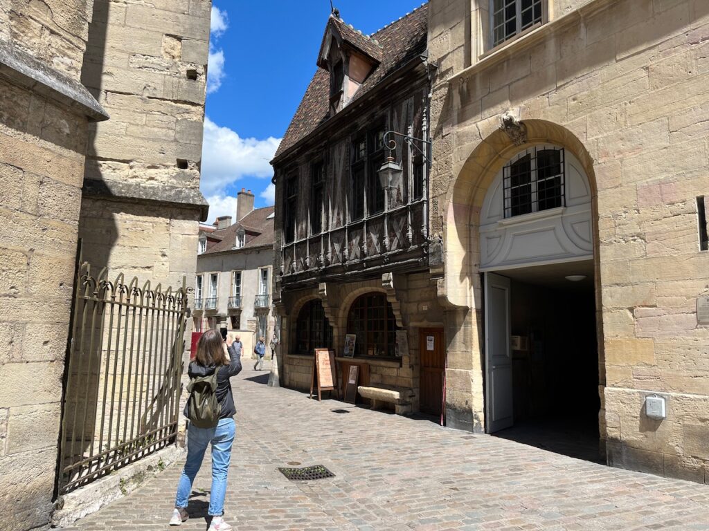 Ausgeruht starten wir zum „Le Parcours de la Chouette“, dem Rundgang der Eule: Das Tourismus Büro stellt für 4€ eine kleine Broschüre mit allen Highlights Dijons bereit, die man in ca. einer Stunde reine Gehzeit zu Fuß abklappern kann, wenn man den kleinen bronzenen Pfeilen mit Eulensymbol folgt. Für Interessierte: https://de.destinationdijon.com/erleben/le-parcours-de-la-chouette-der-rundgang-der-eule/