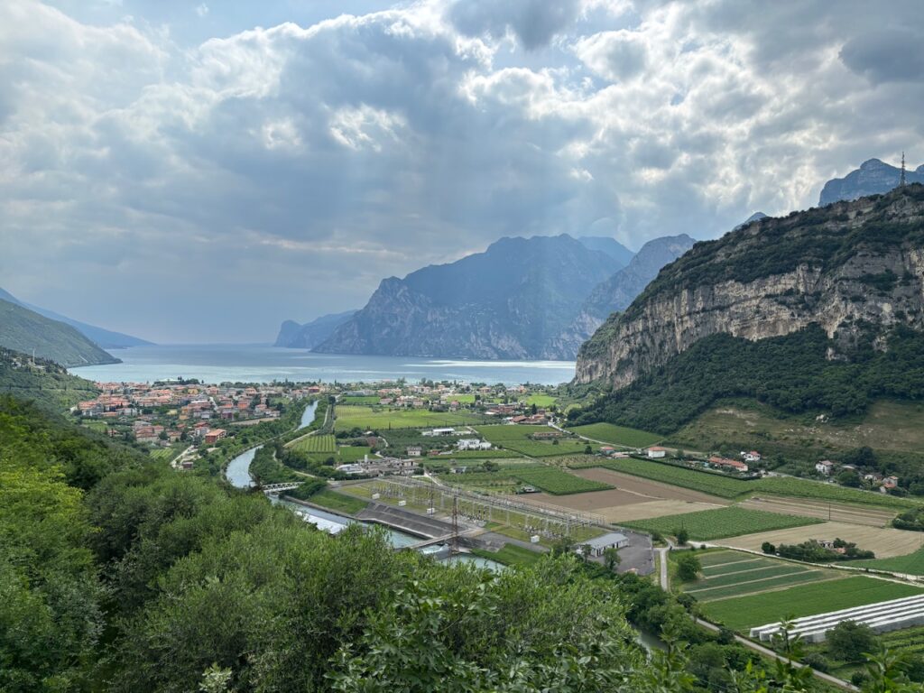 Am kleinen Tobliner See erahnt man bereits südliches Flair. Der Himmel ist zwar dunkel, aber das drohende Unwetter zieht vorbei. Wir beobachten das unter einer gemütlichen Pergola sitzend bei einer hervorragenden Pizza zwischen Dro und Arco. Gut gestärkt sitzen wir wieder auf.