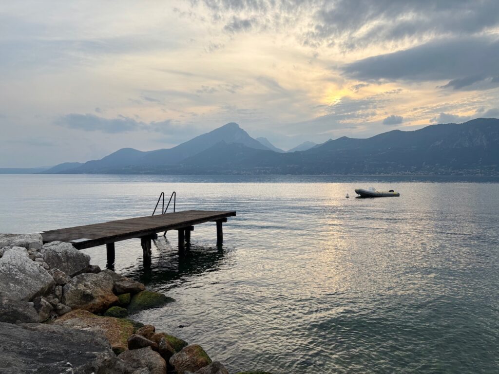 Unsere Moppeds bekommen direkt einen schönen Stellplatz zugewiesen von der netten Chefin des Hotel Veronesi. Nach einem Limoncello Spritz auf der einladenden Terrasse flanieren wir noch am See entlang. Hoffentlich hat der laute Nachbar zwei Zimmer weiter dann auch aufgehört zu schreien 🙄 – er hatte sich bei uns schon beim Absacker durch lautes Smartphonegedudel unbeliebt gemacht.
