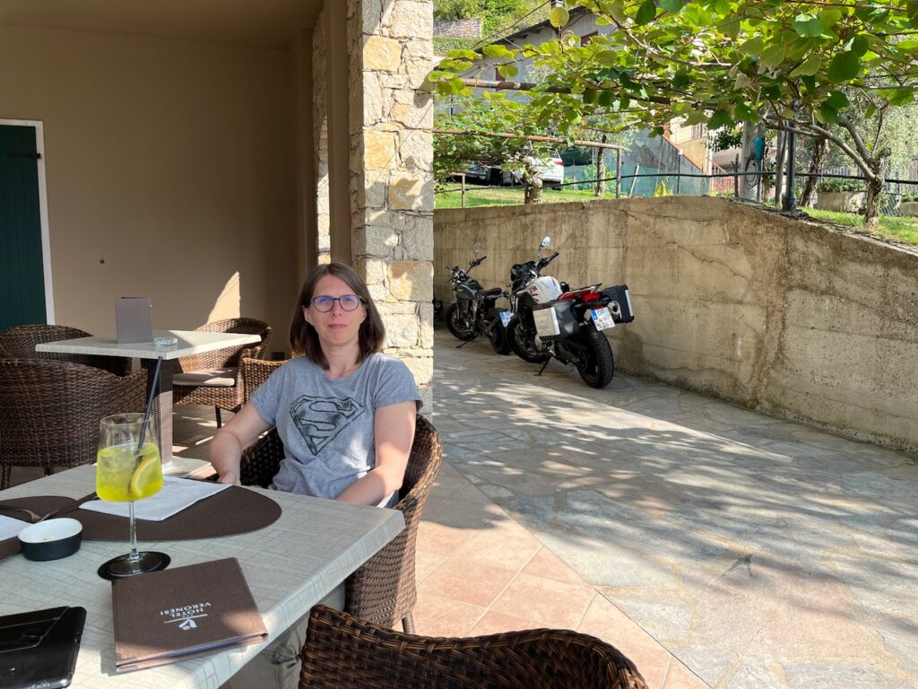 SL geht dann direkt in den See baden. Und danach chillen wir auf der schönen Terrasse bei Limoncello und Torino Spritz und Bruschetta. Herrlich!