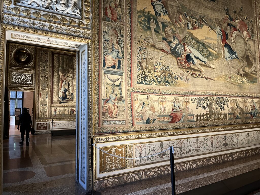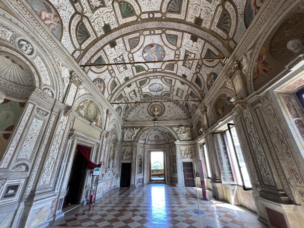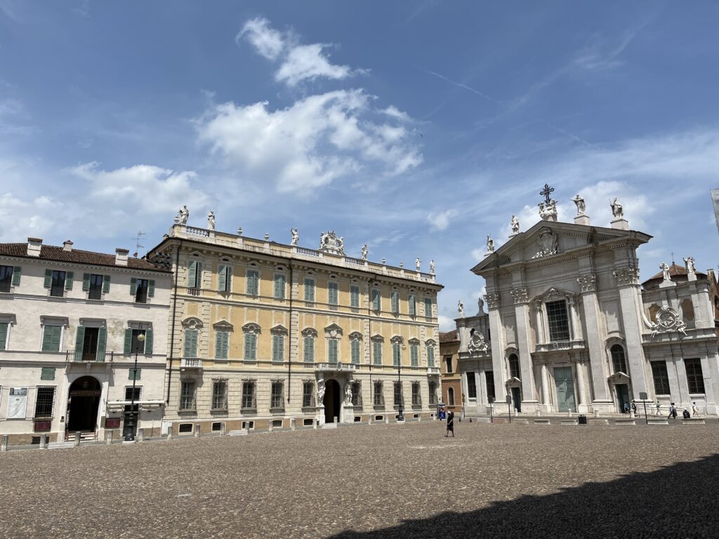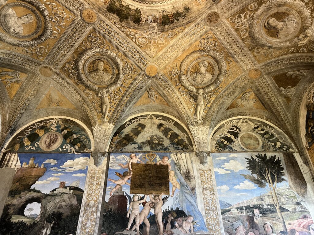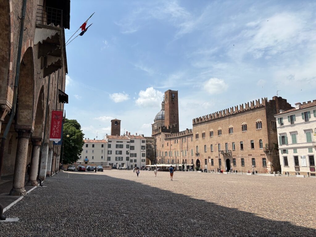 In Mantova (Mantua) stoppen wir für eine Stadtbesichtigung. Zunächst erfrischen wir uns in einem Café auf der Piazza delle Erbe, dann schlendern wir noch kurz (bei mittlerweile strammen fast 30 Grad) und letztendlich entscheiden wir uns für den Besuch des Palazzo Ducale. Der Gebäudekomplex, den die Herrscherfamilie Gonzaga zwischen dem 14. und 17. Jahrhundert errichten lies, ist wie eine Stadt in der Stadt. Ein riesiges Areal, in dem sich Prunkzimmer an Prunkzimmer reiht. Schon nach kurzer Zeit verliert man den Überblick.