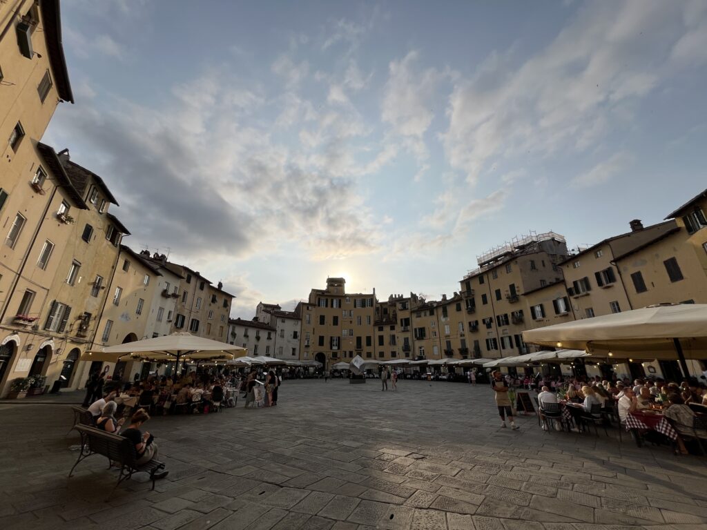 In Lucca übernachten wir in einer Bed and Breakfast „Villa“ unmittelbar an der Stadtmauer und flanieren hier wieder am Abend durch die Altstadt und essen sehr lecker … Pizza.