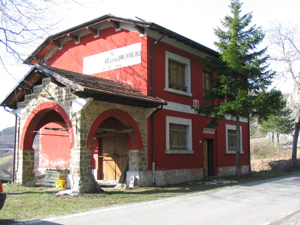 Vor Maranello biegen wir auf eine kleine Straße ab und fahren kurz der Fossa de Spezzano entlang, es wird bewaldeter und viel ruhiger… und viel kurviger. In Montardone wechseln wir auf die SP3 und folgen ihr über Serramazzoni bis Madonna del Baldaccini. Nun sind wir wieder auf einer Bundesstraße, der SS12 – der alten Brenner-Staatsstraße „dell‘Abetone e del Brennero“, die von Pisa über Abetone nach Verona und Bozen bis zum Brenner führt. Entlang dieser ehemaligen Hauptverkehrsader stehen immer wieder kleine rote Häuschen der ANAS – die in ganz Italien zu findenden „Case Continiere“ in dem für sie typischen pompejanischen Rot. Erbaut zum Teil in den 1930er boten sie bis zu Ende des 20. Jahrhunderts Unterkunft für die Straßenwärter, die sich jeweils um 3-4 Kilometer Streckenabschnitt kümmern mussten. Viele der Häuser entlang der SS12 sind nach der Neuregelung der Kantone verlassen oder werden anderweitig genutzt. SB versäumt eines der Häuschen zu knipsen, daher hier von https://stradeanas.it:
