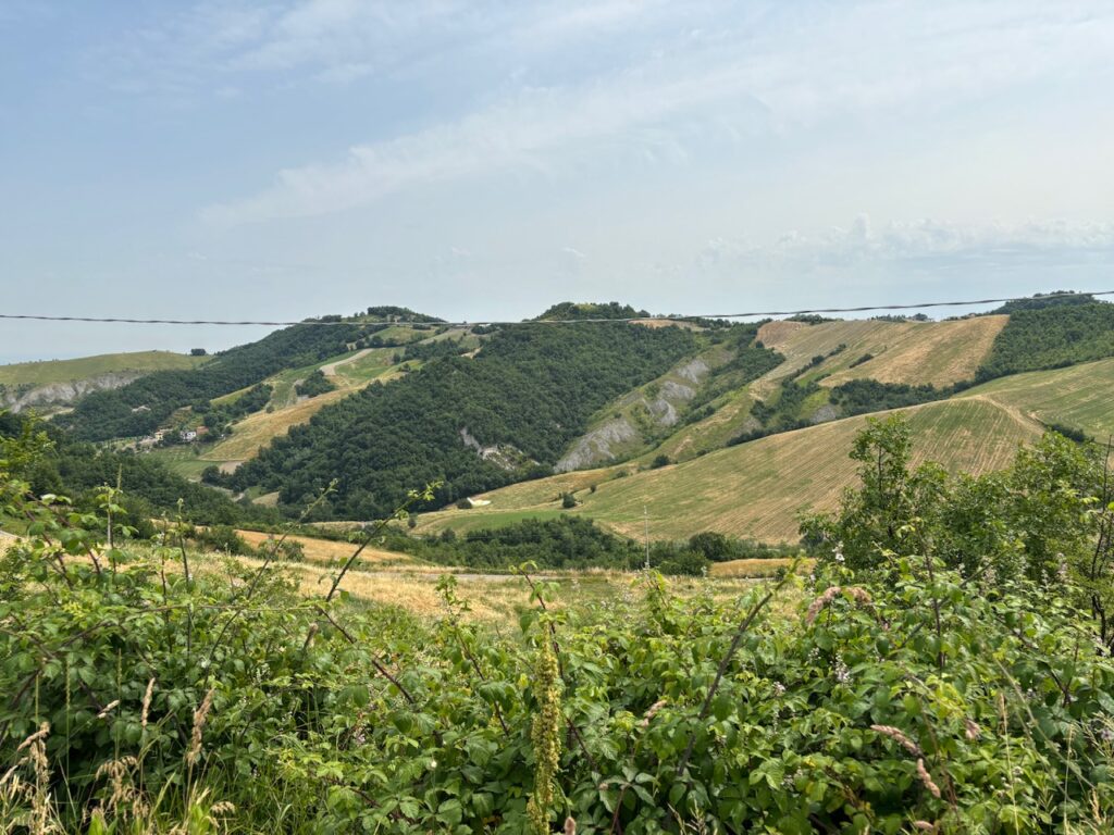 Pavulo nel Frignano passieren wir, bevor es wieder kurviger wird. Wir schrauben uns auch immer höher. Es wird hügeliger und noch mehr bewaldet. In La Serra nehmen wir die SP42 weiter Richtung Süd-Westen. Wir kommen nur langsam voran, da der Straßenbelag abenteuerlich ist und es auch zahlreiche Baustellen gibt.