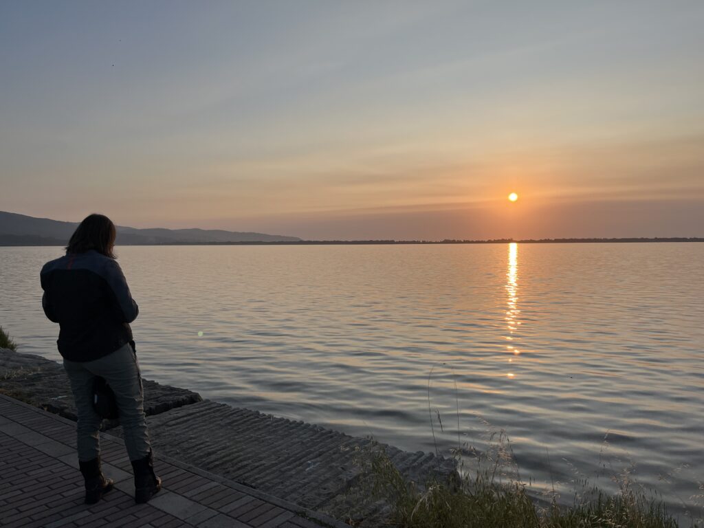 Wir düsen weiter nach Orbetello, um unsere Nahrungsvorräte aufzustocken. Ein großer Coop kommt uns da gelegen. Mit den frischen Lebensmitteln genießen wir den Sonnenuntergang auf unserem Balkon.