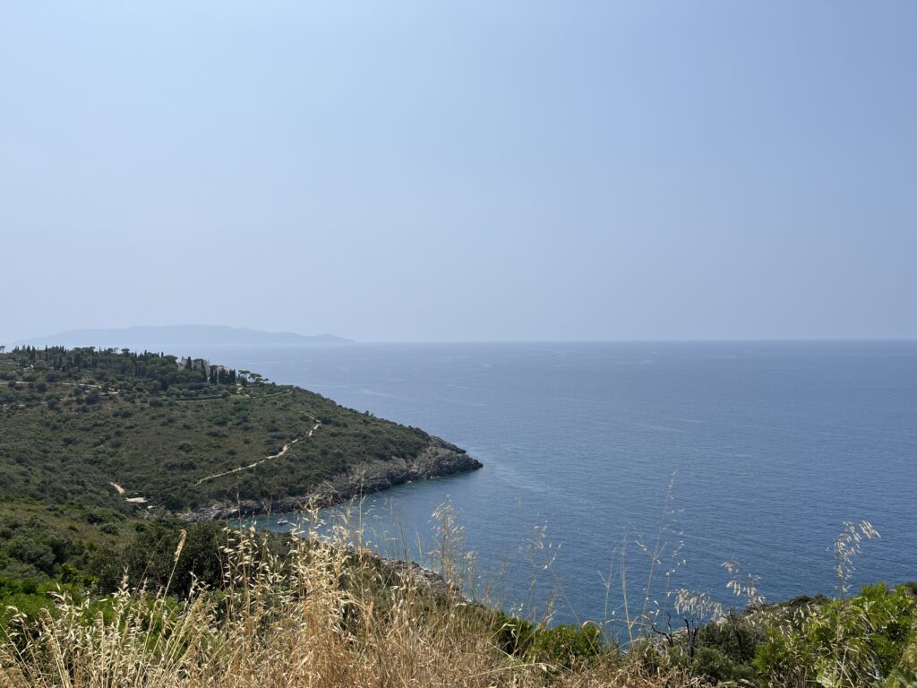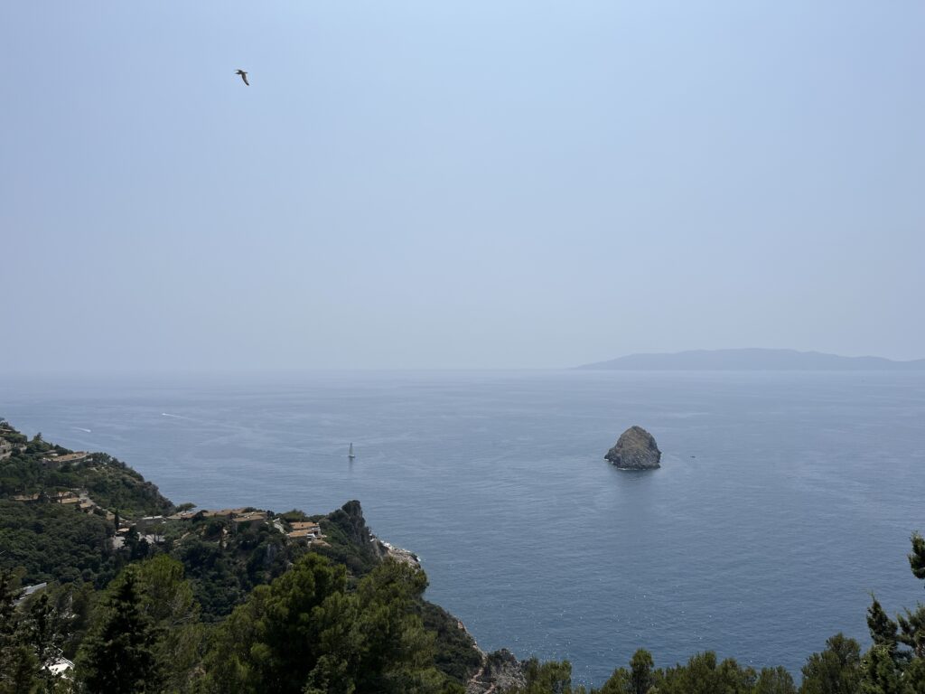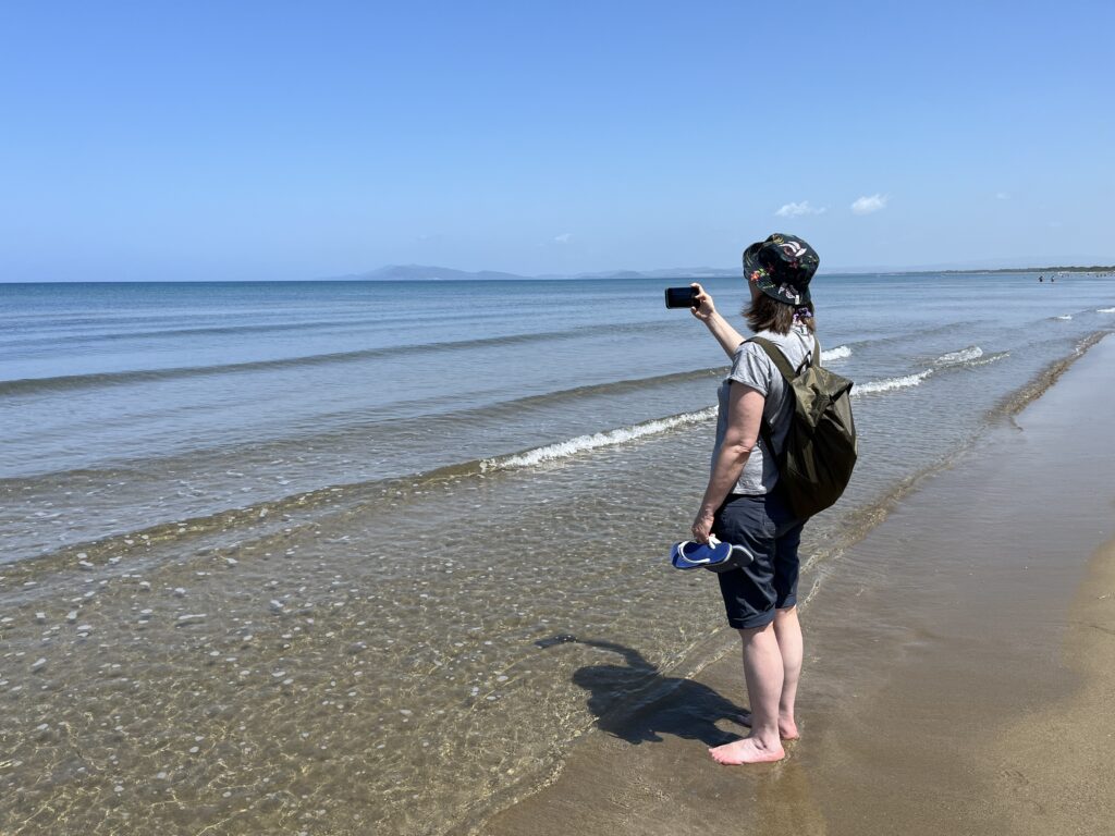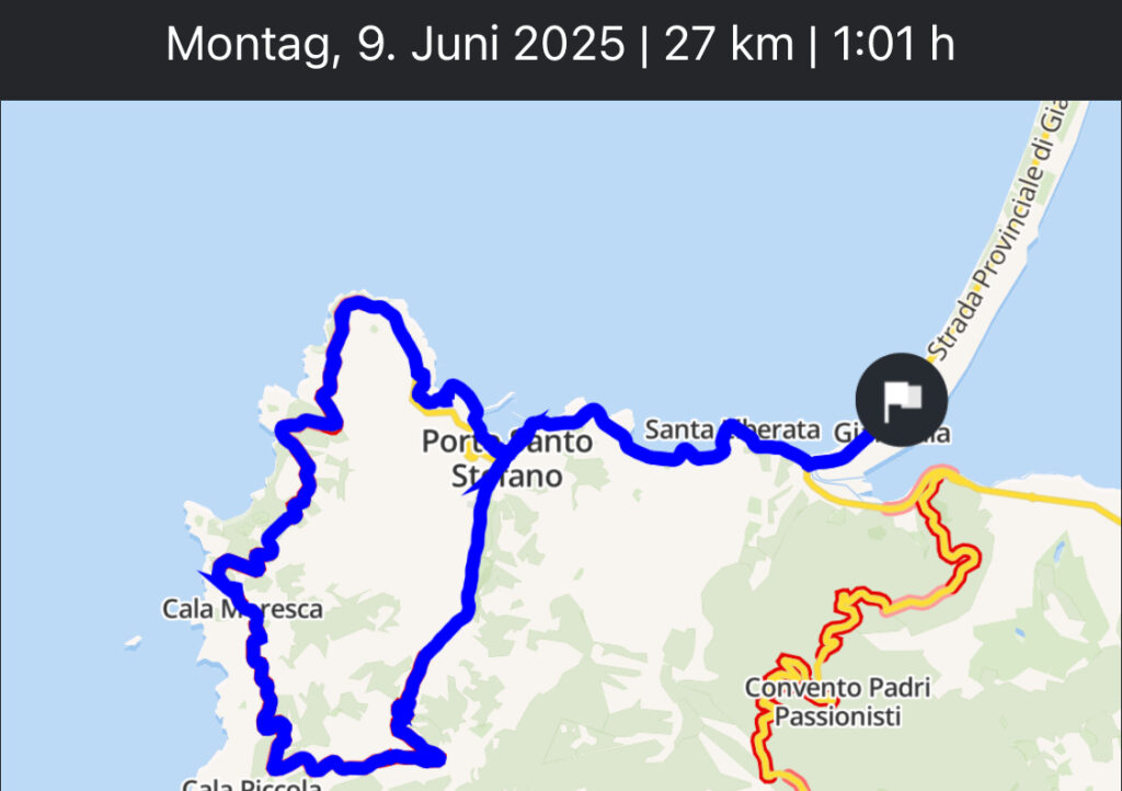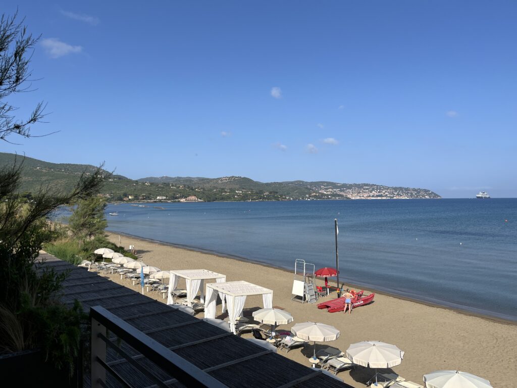 Es hat wohl nachts gestürmt. Der Strand ist nicht mehr ganz so sauber und im Meer sieht man viel Treibgut. Wir stalken ein großes Kreuzfahrtschiff mit dem Fernglas und erinnern uns, dass 2012 quasi hier vor der Haustür vor der Insel Gilio die Costa Concordia verunglückt ist.
