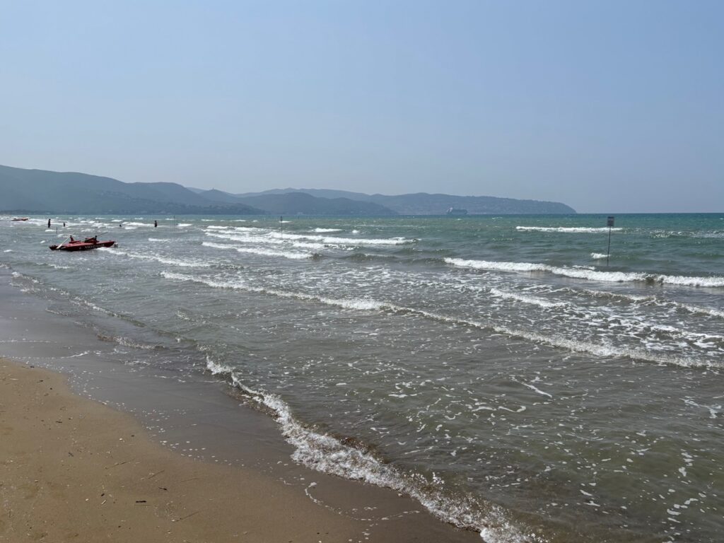 Das Hotel Villa Ambra (104 😎) liegt direkt am Strand. Außer des Restaurants und eines Kiosks gibt es keine nähere touristische Infrastruktur und wir genießen zur linken und rechten Seite unverbauten Strand.