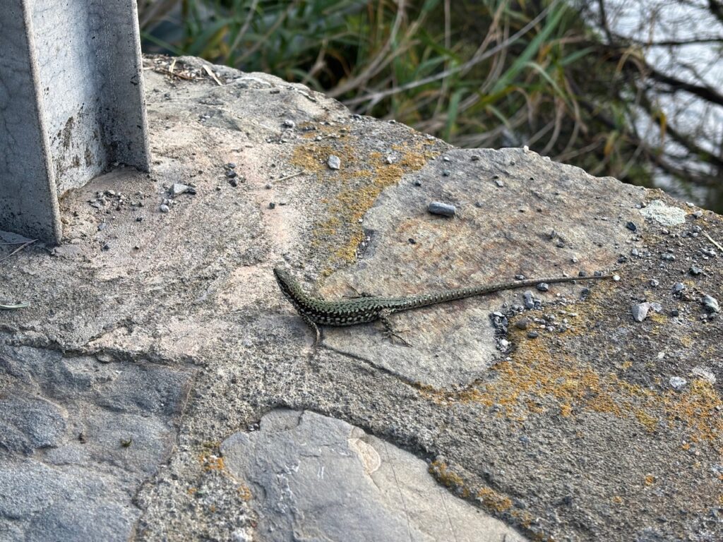 In einer großen S-Kurve steuern wir Volterra an. Der Weg führt uns leicht bis mittel kurvig rauf und runter entlang von Getreidefeldern und durch Wald. SB erspäht eine große Smaragdeidechse. Der Vorteil des Vorausfahrenden: Wildlife-Sichtungen. Was der Hinterherfahrende allerdings ebenfalls gesichtet hat: einen abgetrennten Rehkopf am Straßenrand.