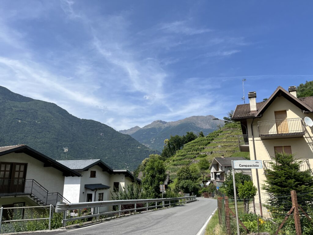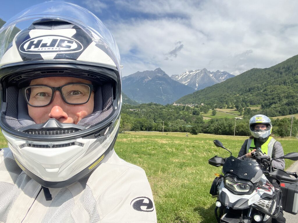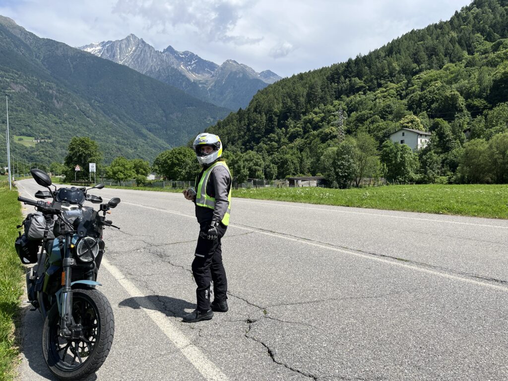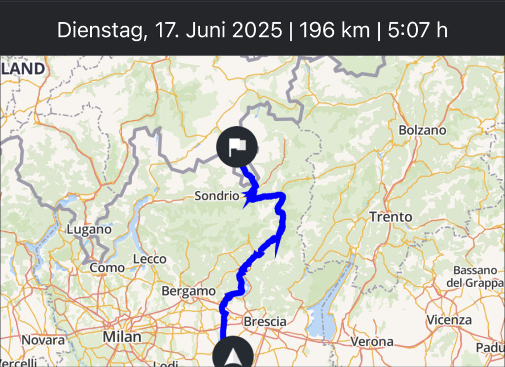 Nun beginnt der Aufstieg zum Passo Aprica und durch den langgezogenen Skiort hindurch. Die Abfahrt auf der SS39 und SP25 ist ganz schön heftig! Nach der letzten Kurve müssen wir kurz eine Verschnaufpause einlegen 😎.