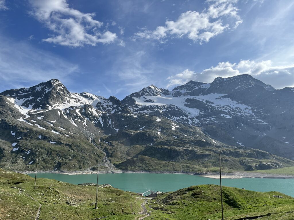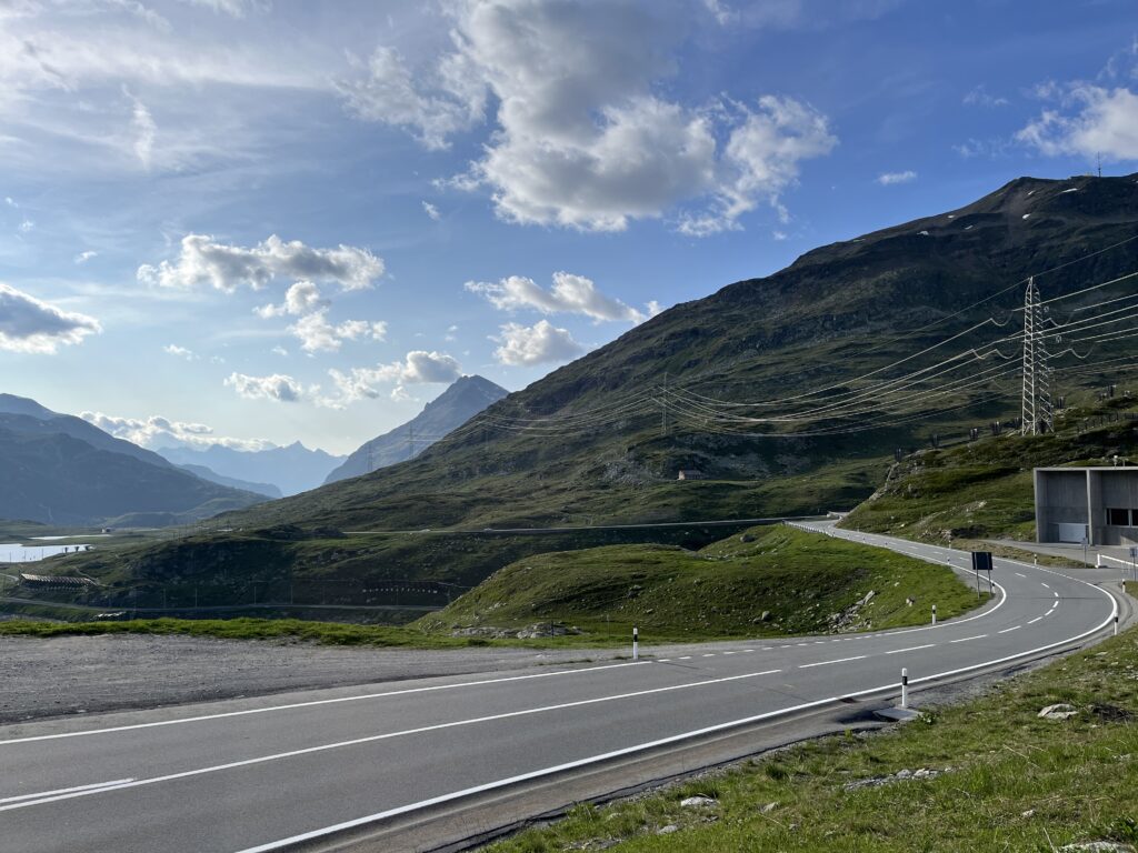 Weiter reisen wir auf der SS38 bis nach Torri zur Schweizer Grenze und dann vorbei am Puschlaversee. Ab Poschiavo geht es hoch zum Passo Bernina: gut ausgebaut, mit einige Baustellen und auch hier mit irre fahrenden Italienern – sehr nervig.