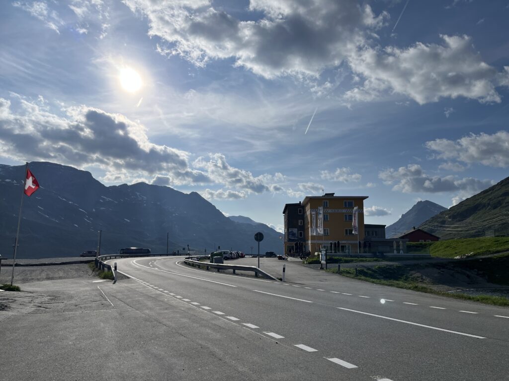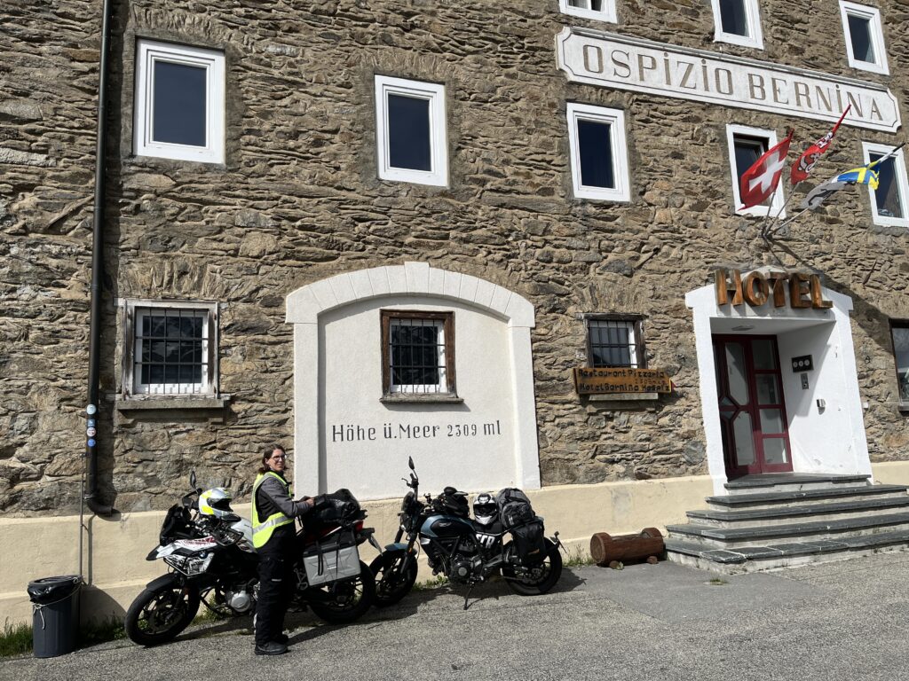 Unsere Unterkunft ist das Ospizio Bernina direkt am Pass. Es ist einfach und sehr hellhörig, das zugehörige Restaurant teuer, aber gut. Der Ausblick ist atemberaubend! Wir freuen uns, dass wir uns halb-spontan dazu entschieden haben.